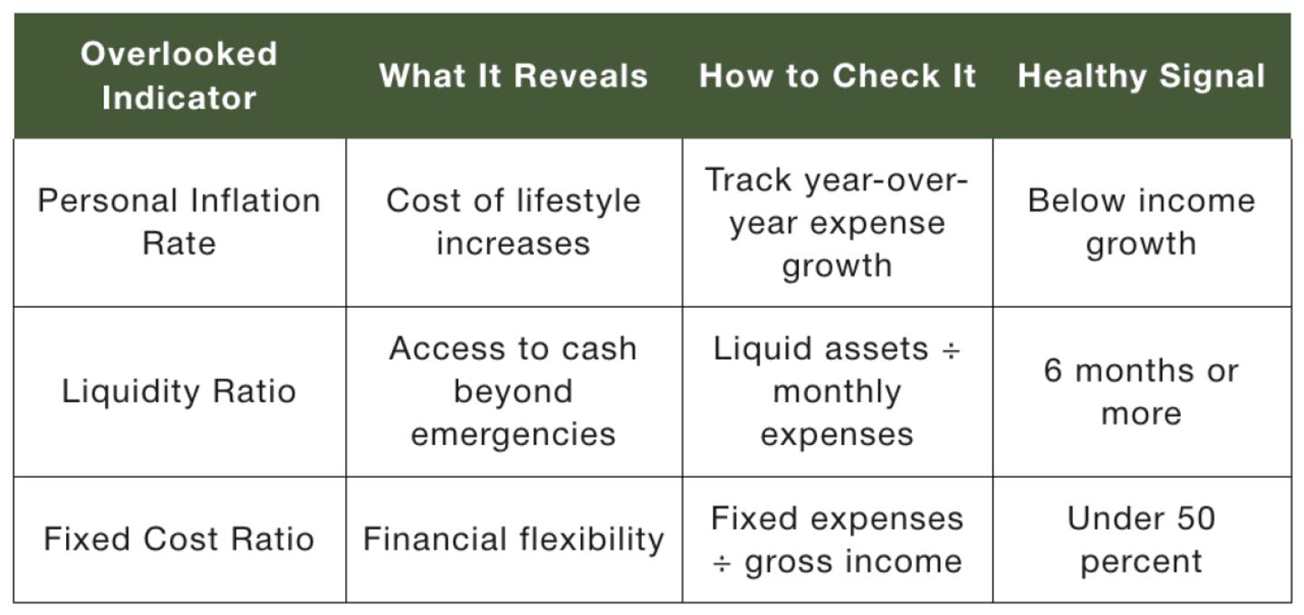 The financial vital signs discussed above are the most important, and they’re also typically the ones people pay the most attention to. However, there are some other financial indicators that can help you assess your overall situation, but that most people ignore.