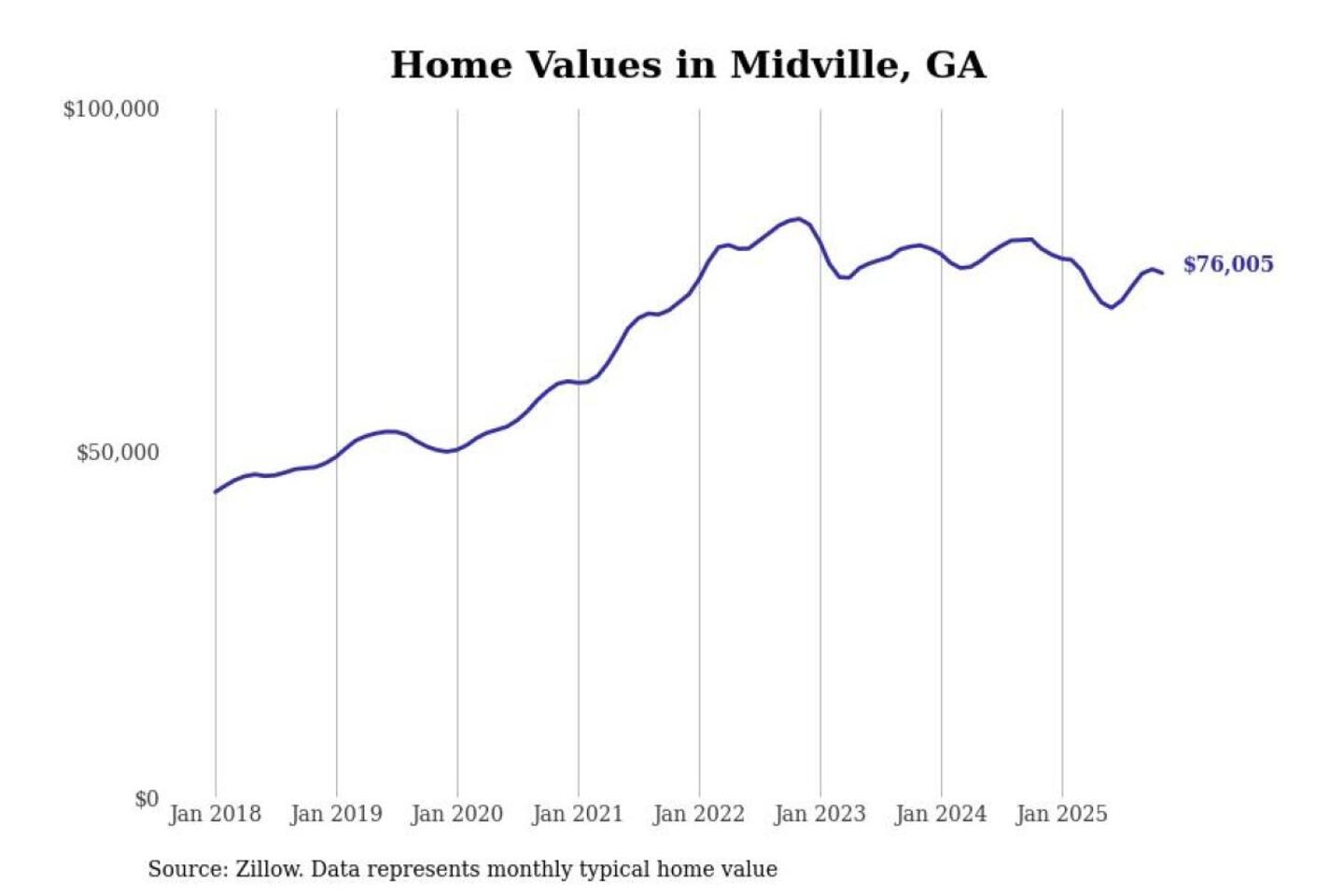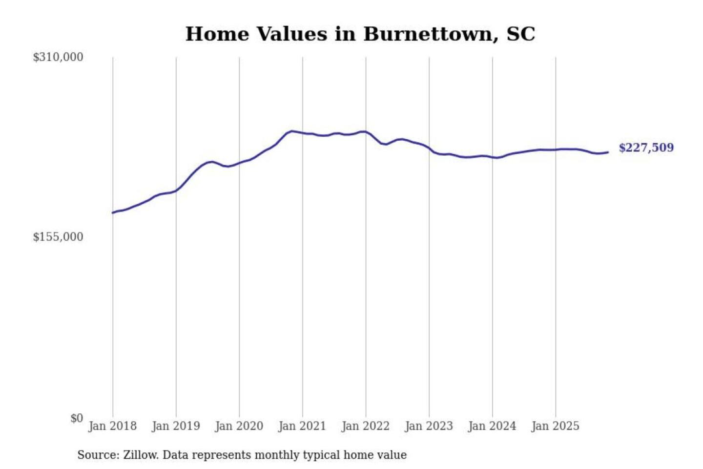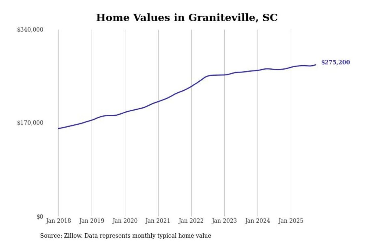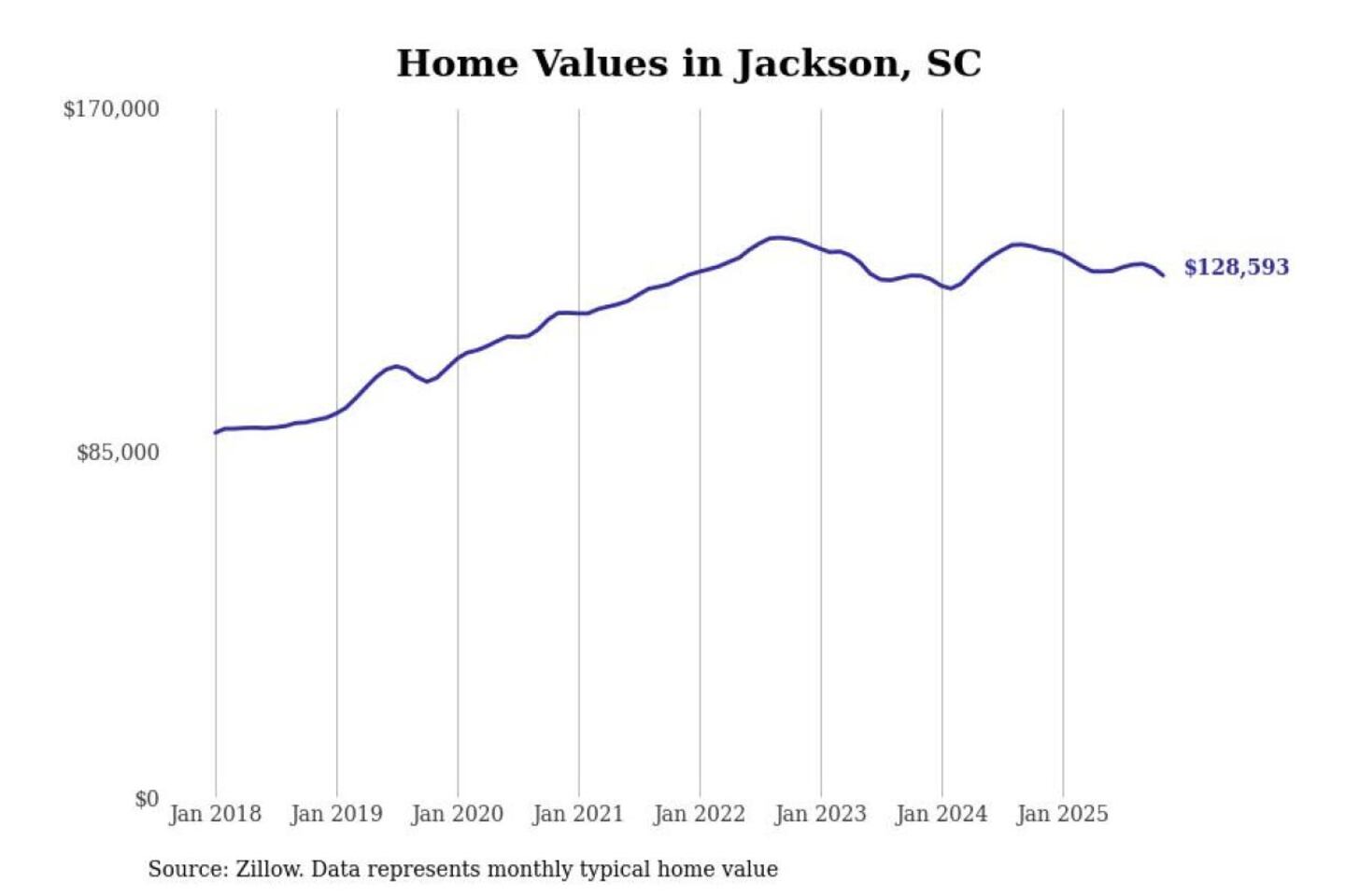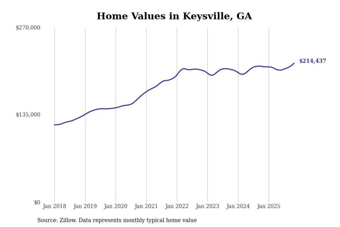 Stacker compiled a list of cities with the most expensive homes in the Augusta-Richmond County, GA-SC metro area using data from Zillow. Charts show the monthly typical home value since January 2018.