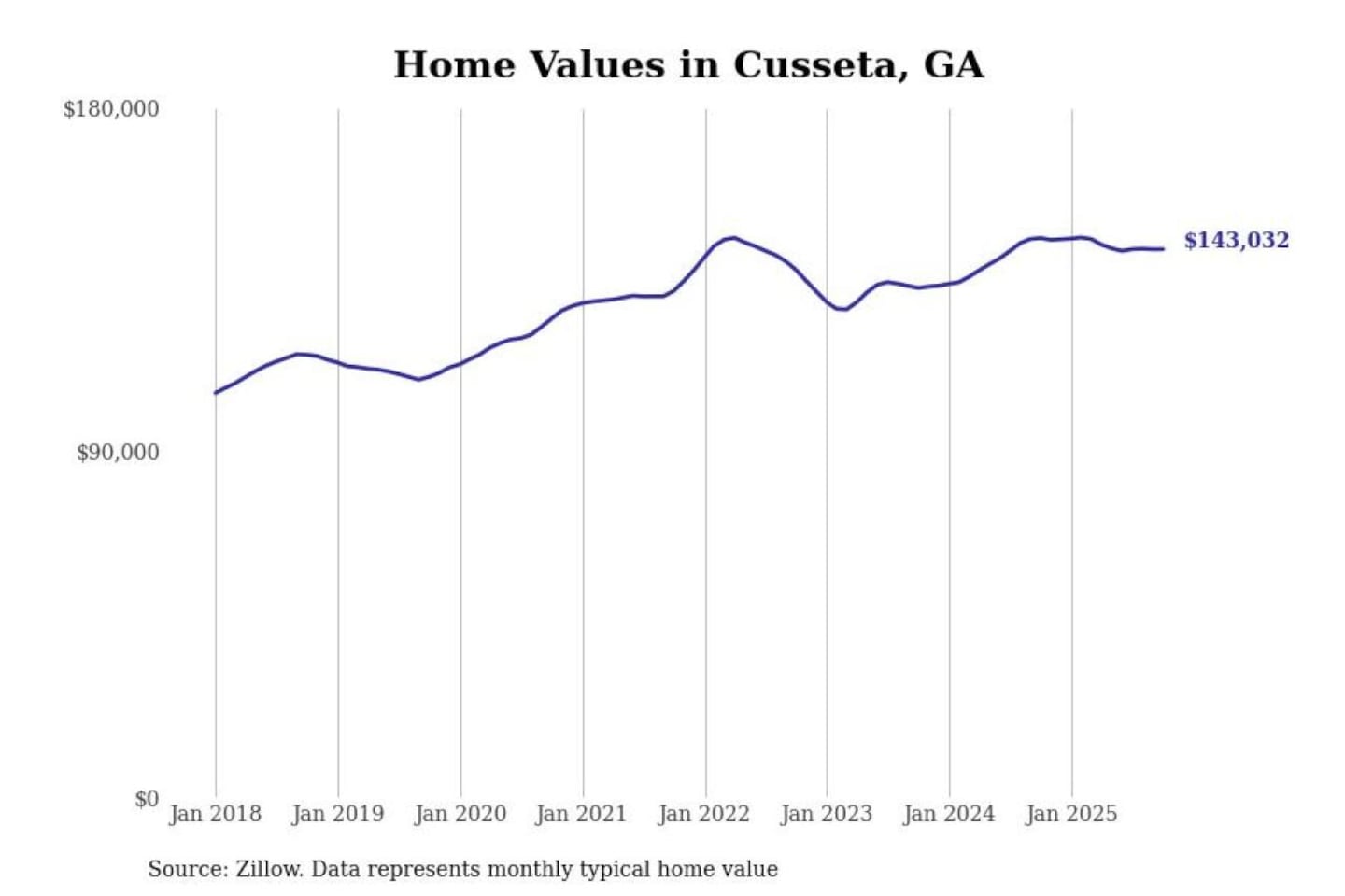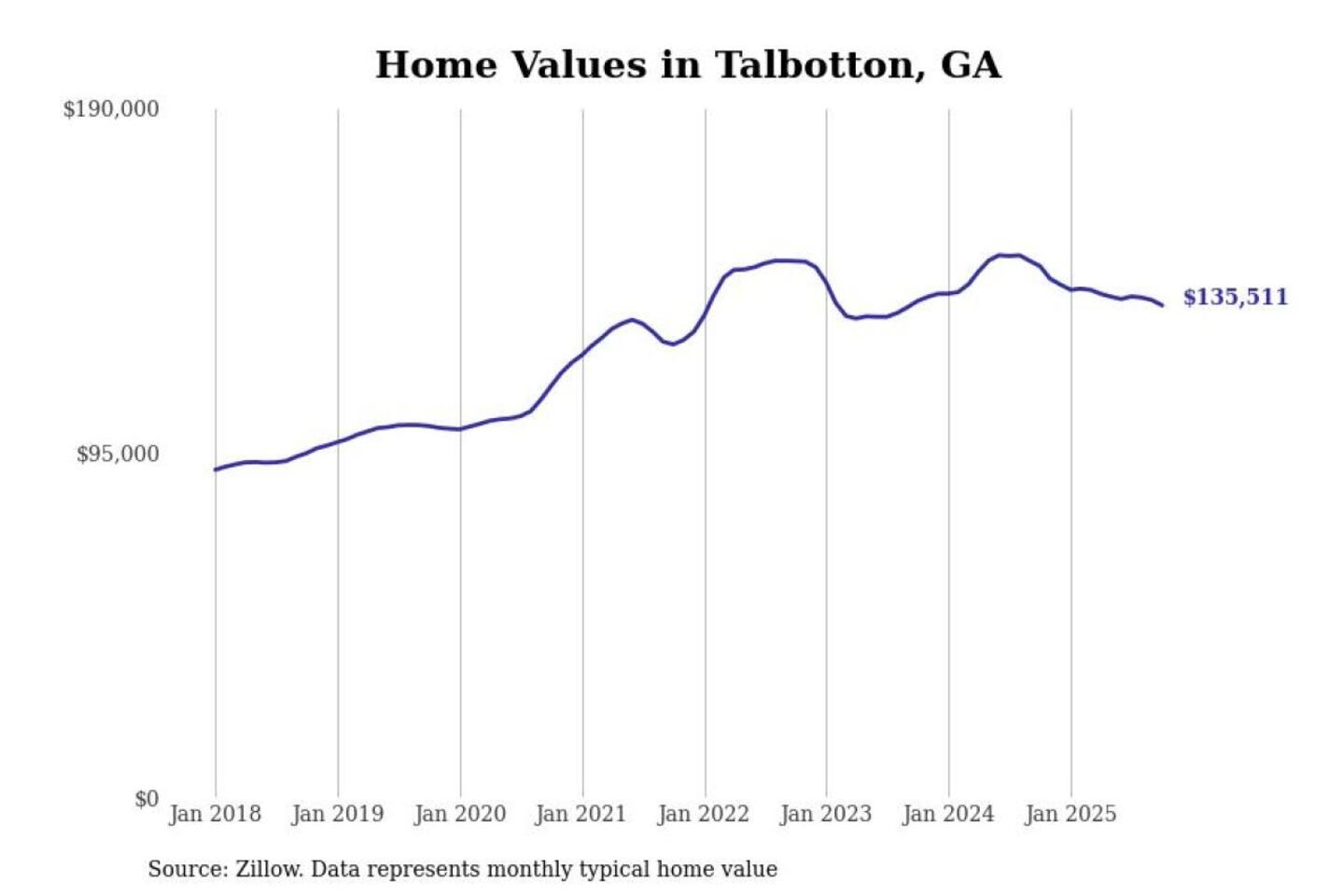 Stacker compiled a list of cities with the most expensive homes in the Columbus, GA-AL metro area using data from Zillow. Charts show the monthly typical home value since January 2018.