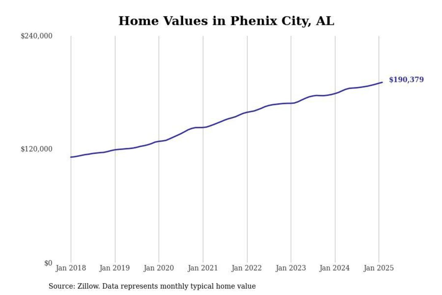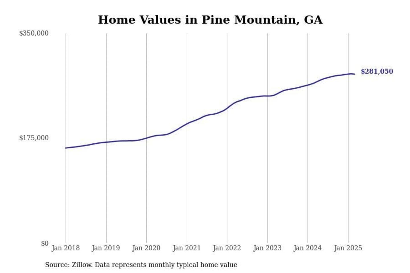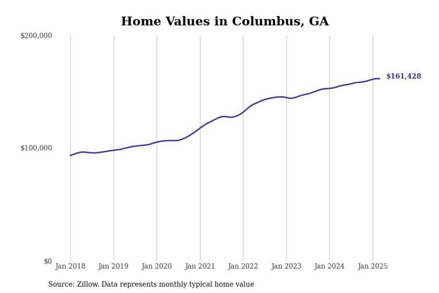 Stacker compiled a list of cities with the most expensive homes in the Columbus, GA-AL metro area using data from Zillow. Charts show the monthly typical home value since January 2018.