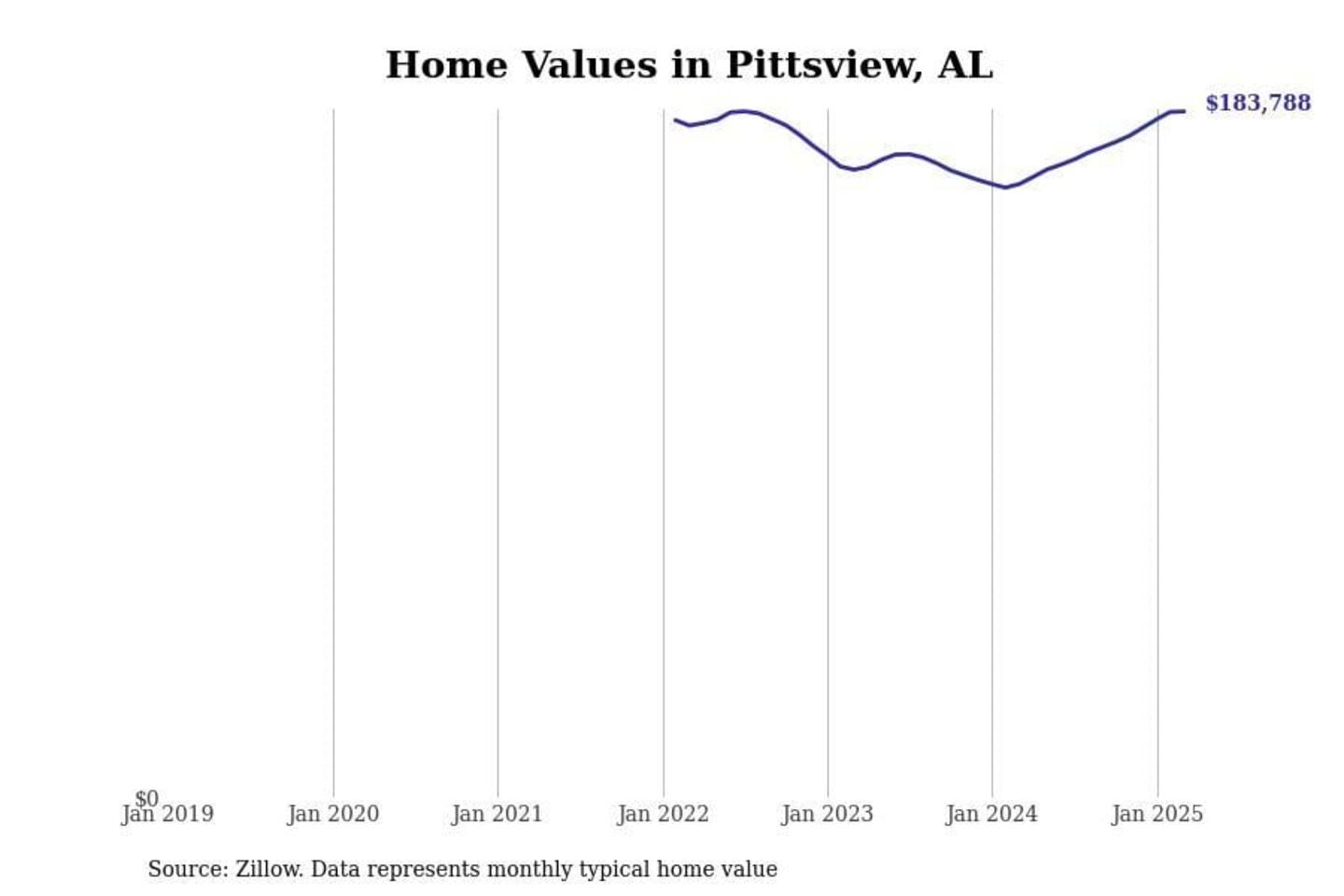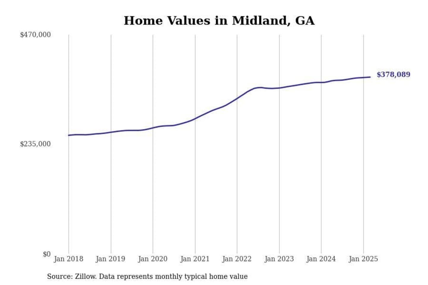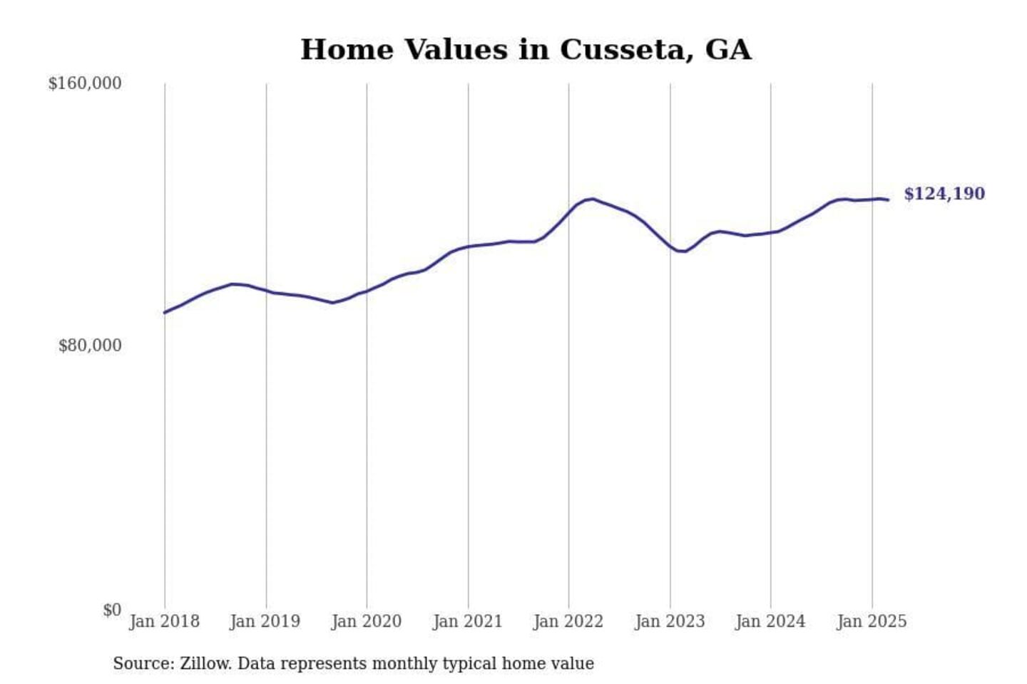 Stacker compiled a list of cities with the most expensive homes in the Columbus, GA-AL metro area using data from Zillow. Charts show the monthly typical home value since January 2018.