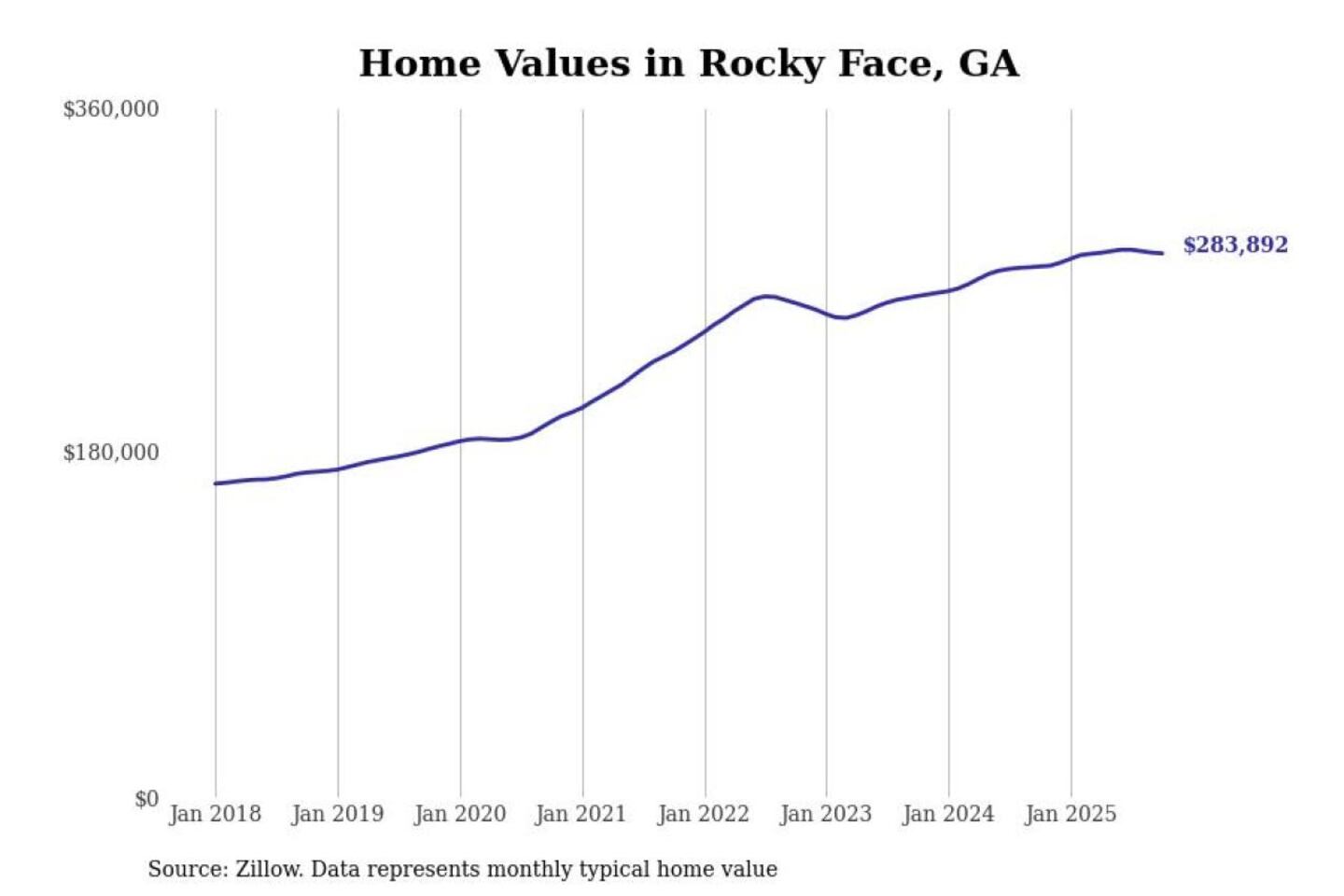 Stacker compiled a list of cities with the most expensive homes in the Dalton, GA metro area using data from Zillow. Charts show the monthly typical home value since January 2018.