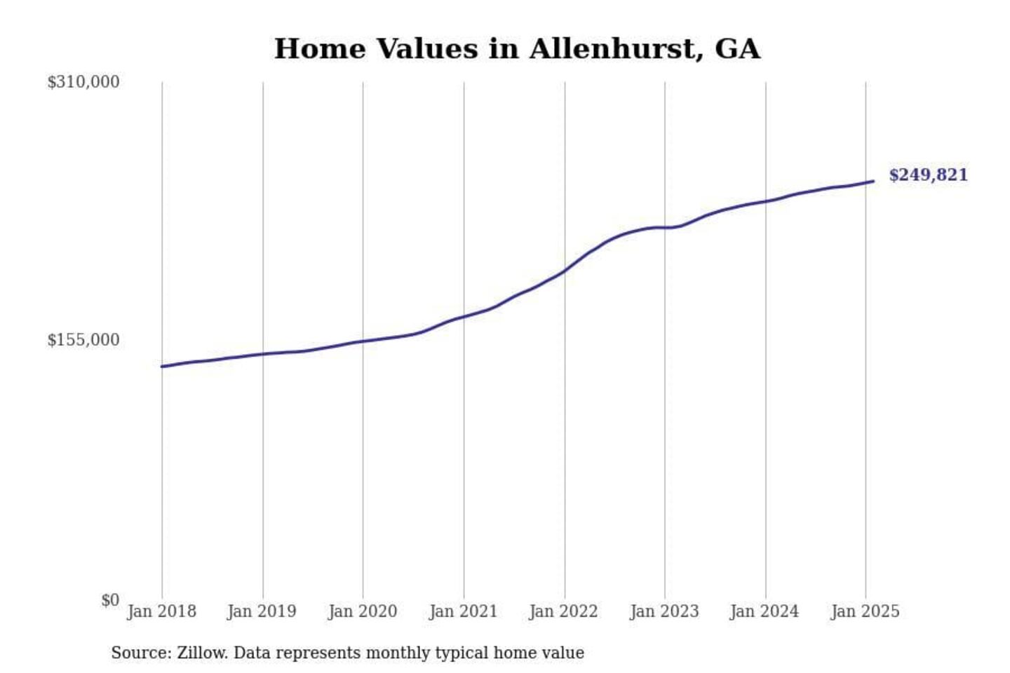 Stacker compiled a list of cities with the most expensive homes in the Hinesville, GA metro area using data from Zillow. Charts show the monthly typical home value since January 2018.