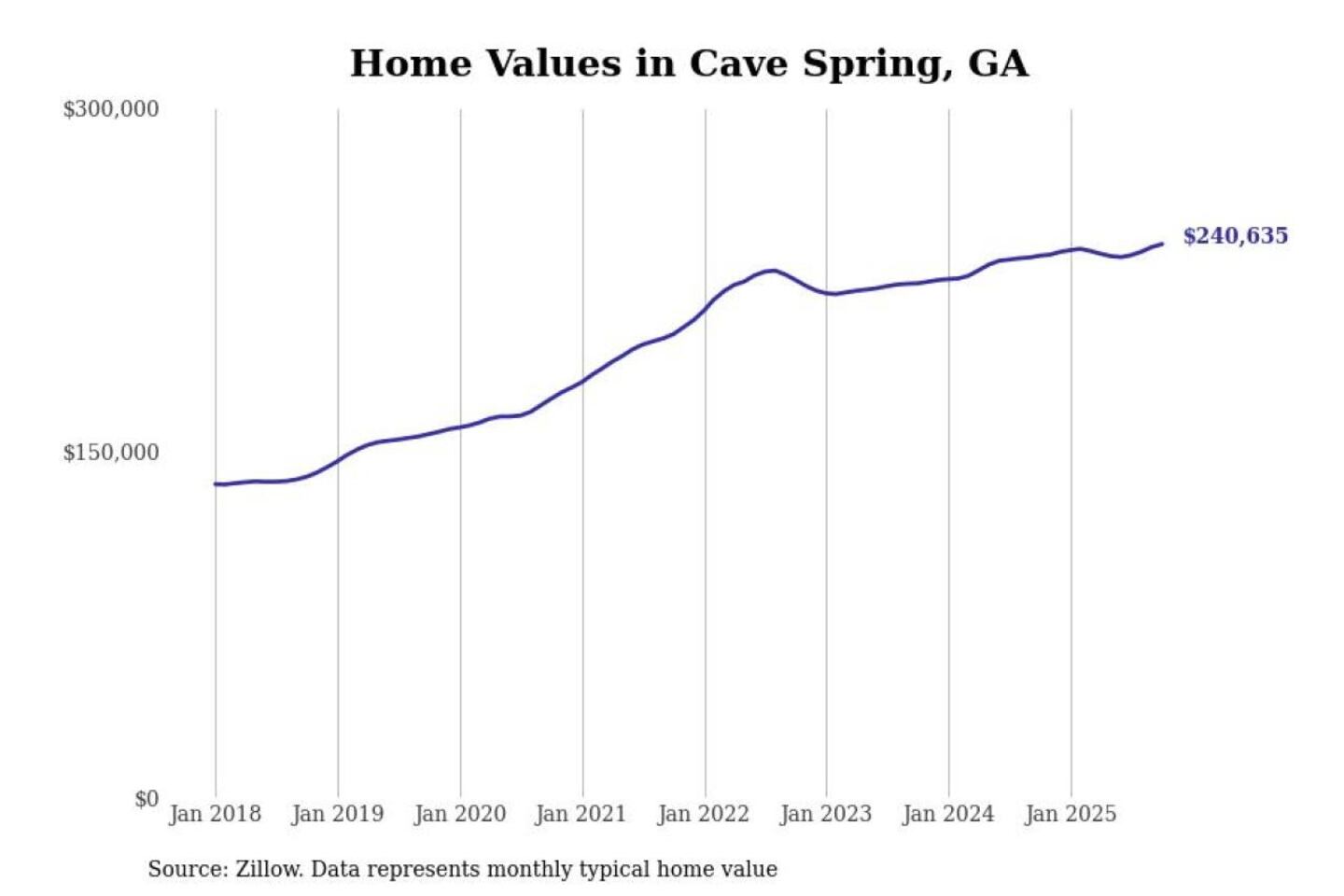 Stacker compiled a list of cities with the most expensive homes in the Rome, GA metro area using data from Zillow. Charts show the monthly typical home value since January 2018.