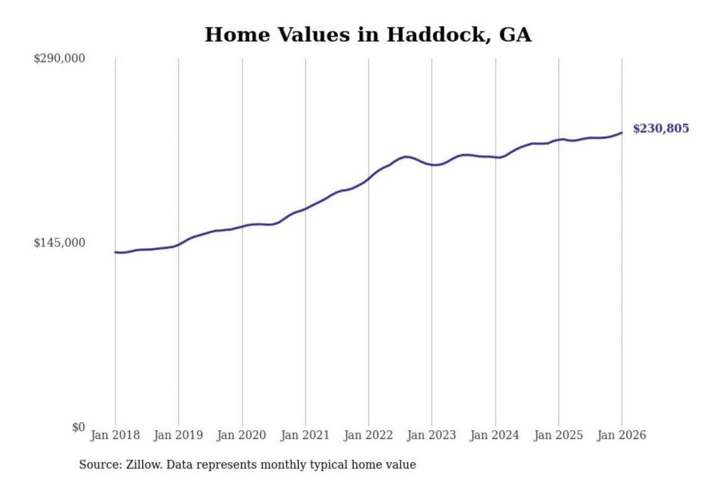 Stacker compiled a list of cities with the most expensive homes in the Macon-Bibb County, GA metro area using data from Zillow. Charts show the monthly typical home value since January 2018.
