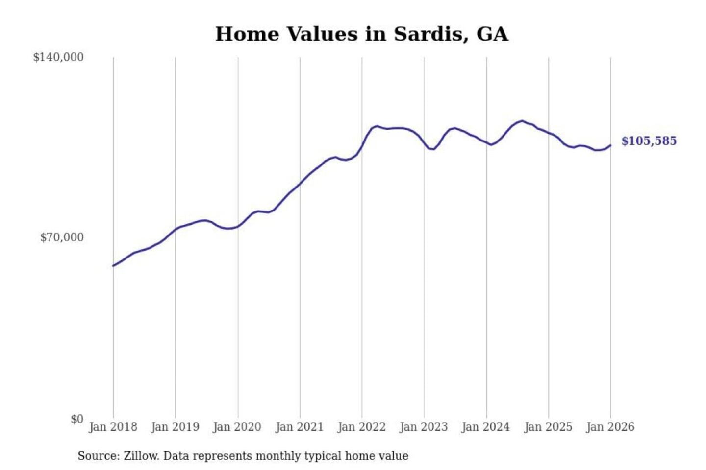 - Typical home value: $105,585 (#33 most expensive city in metro)