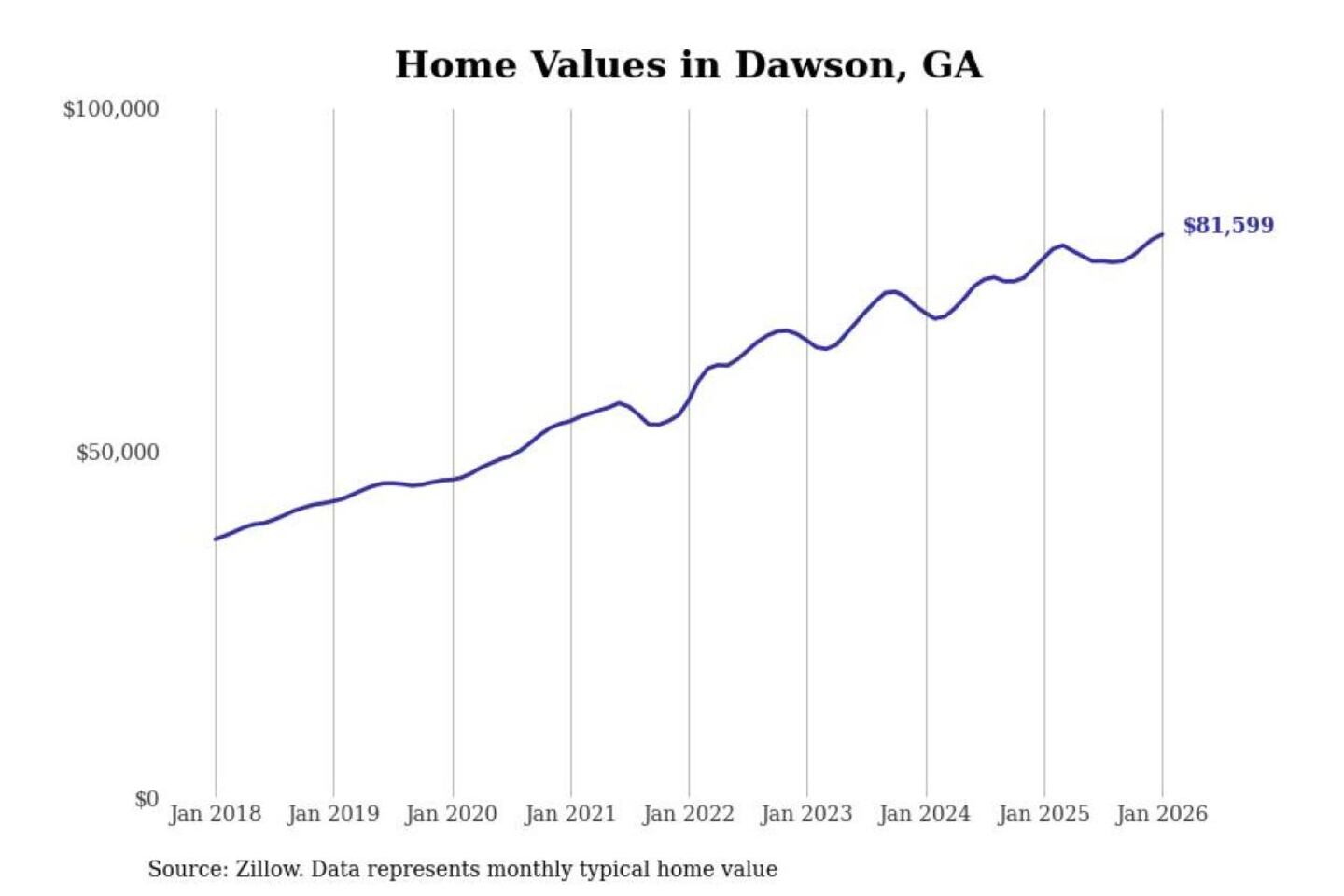 Cities with the fastest-growing home prices in the Albany, Georgia metro area