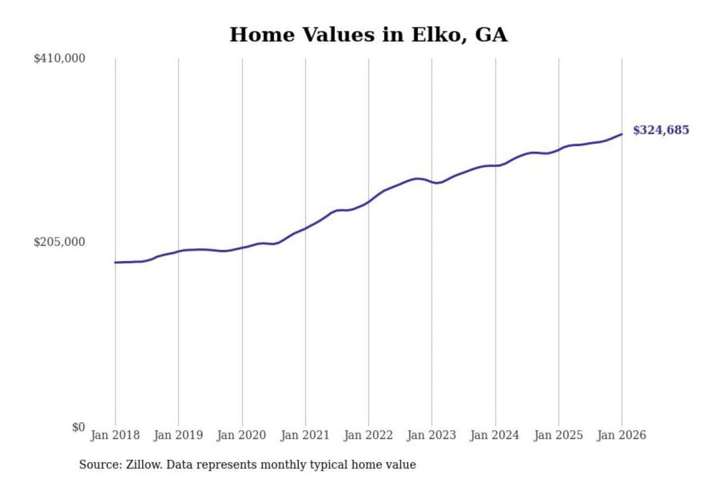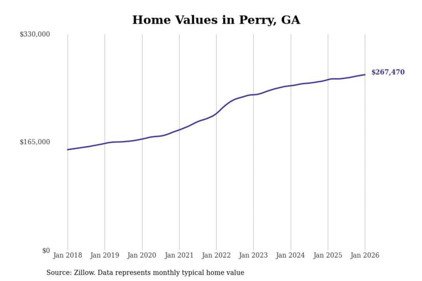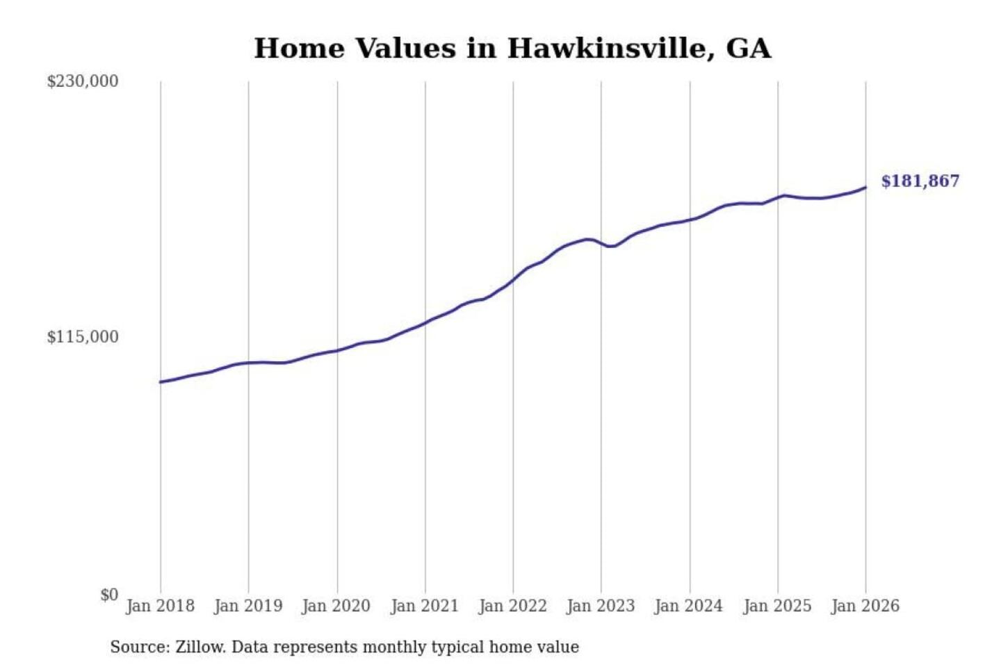 Stacker compiled a list of cities with the most expensive homes in the Warner Robins, GA metro area using data from Zillow. Charts show the monthly typical home value since January 2018.