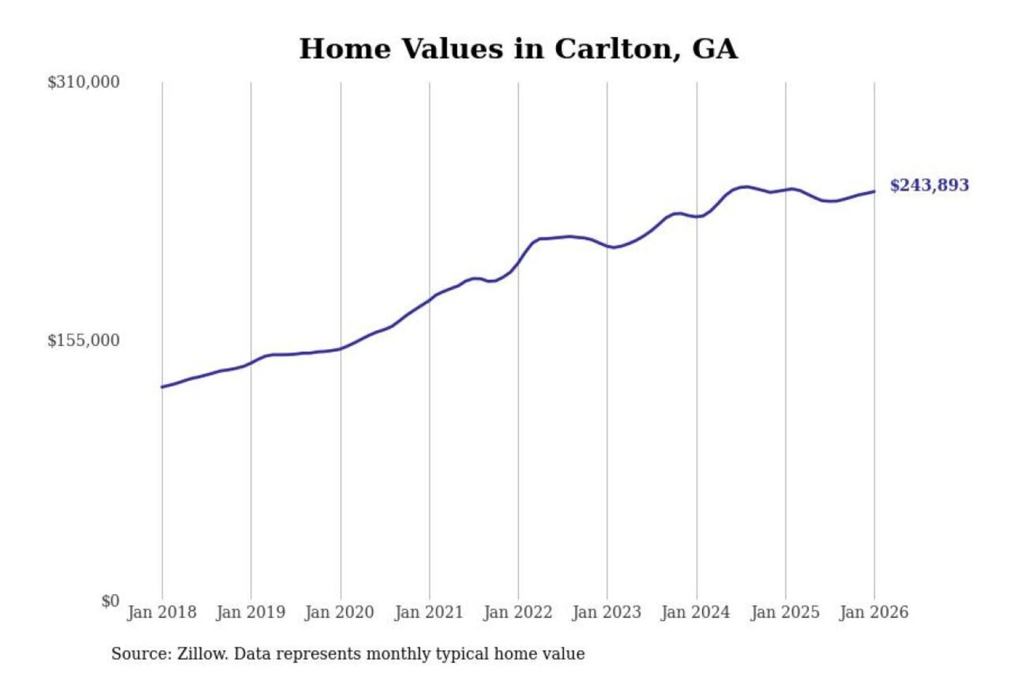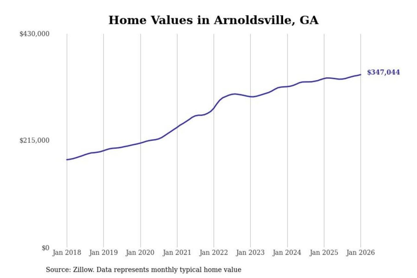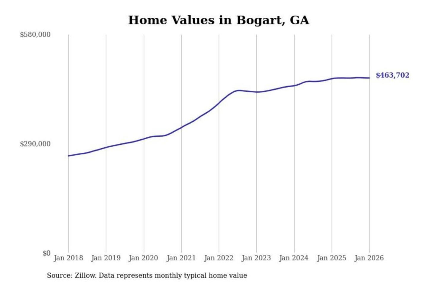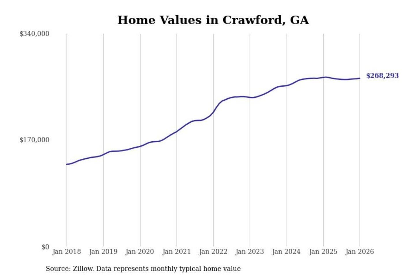 Stacker compiled a list of cities with the most expensive homes in the Athens-Clarke County, GA metro area using data from Zillow. Charts show the monthly typical home value since January 2018.
