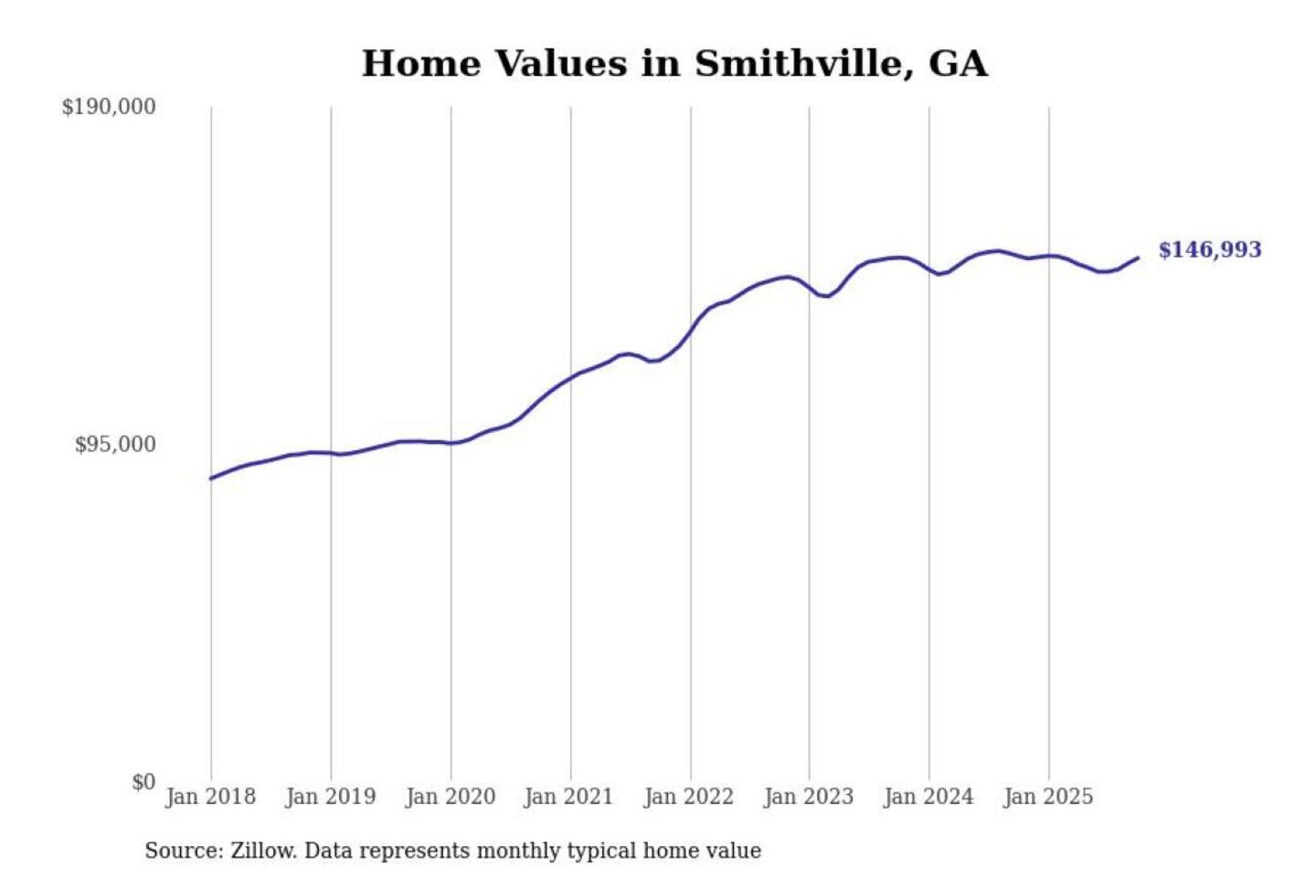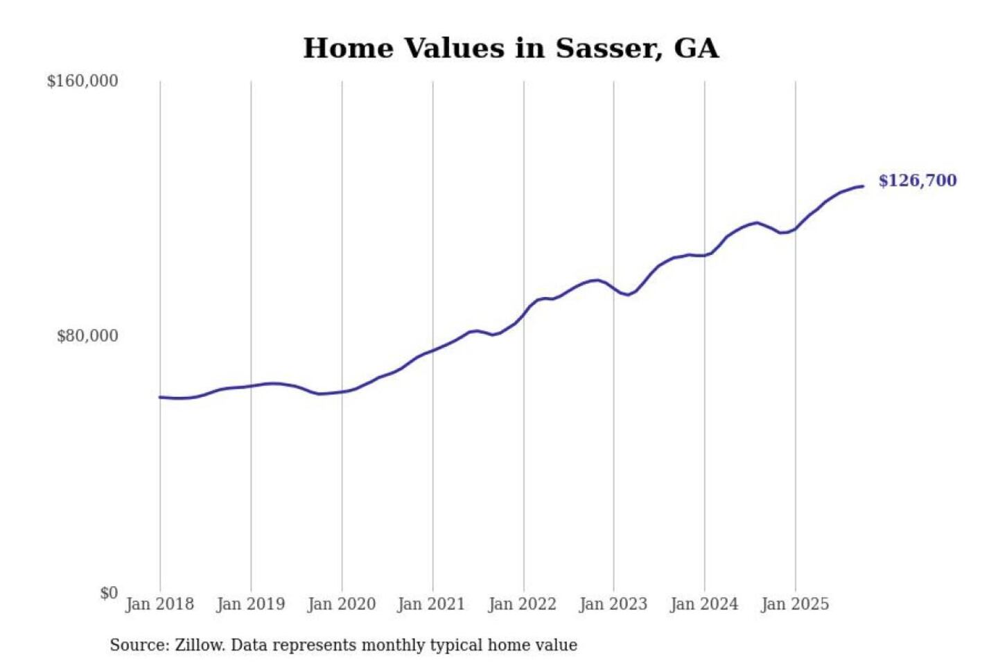 Stacker compiled a list of cities with the most expensive homes in the Albany, Georgia metro area using data from Zillow. Charts show the monthly typical home value since January 2018. All 13 cities and towns with data available were included in the list.