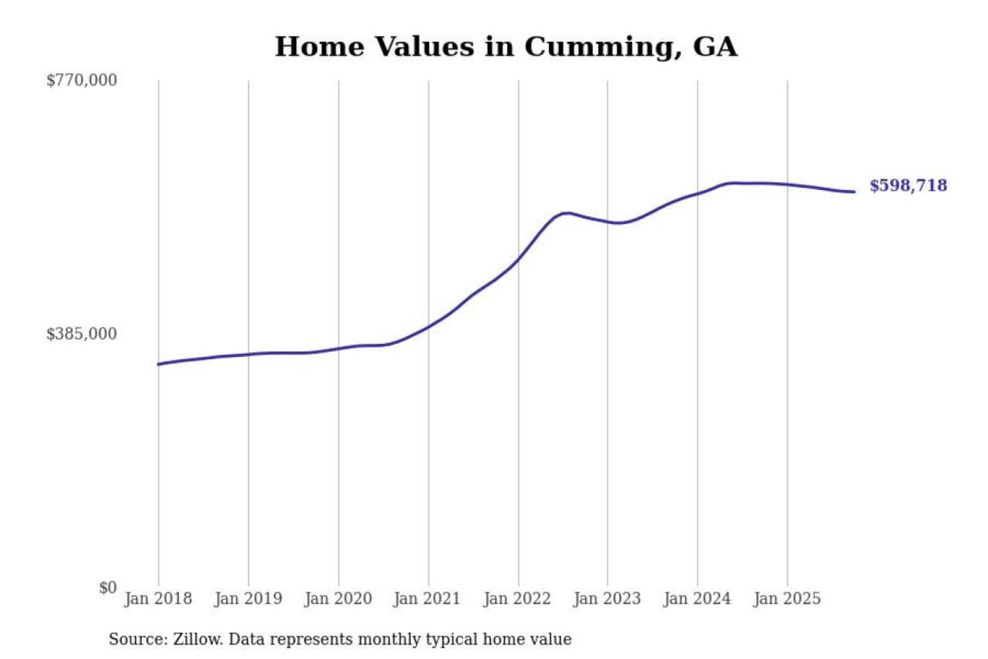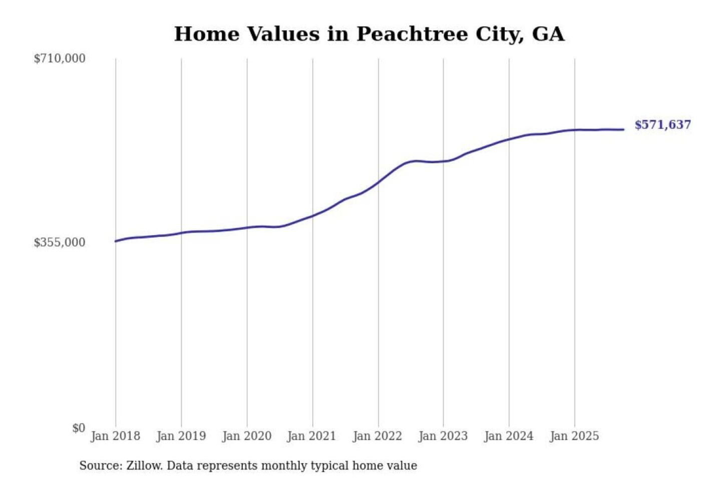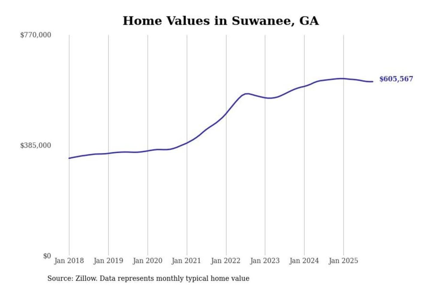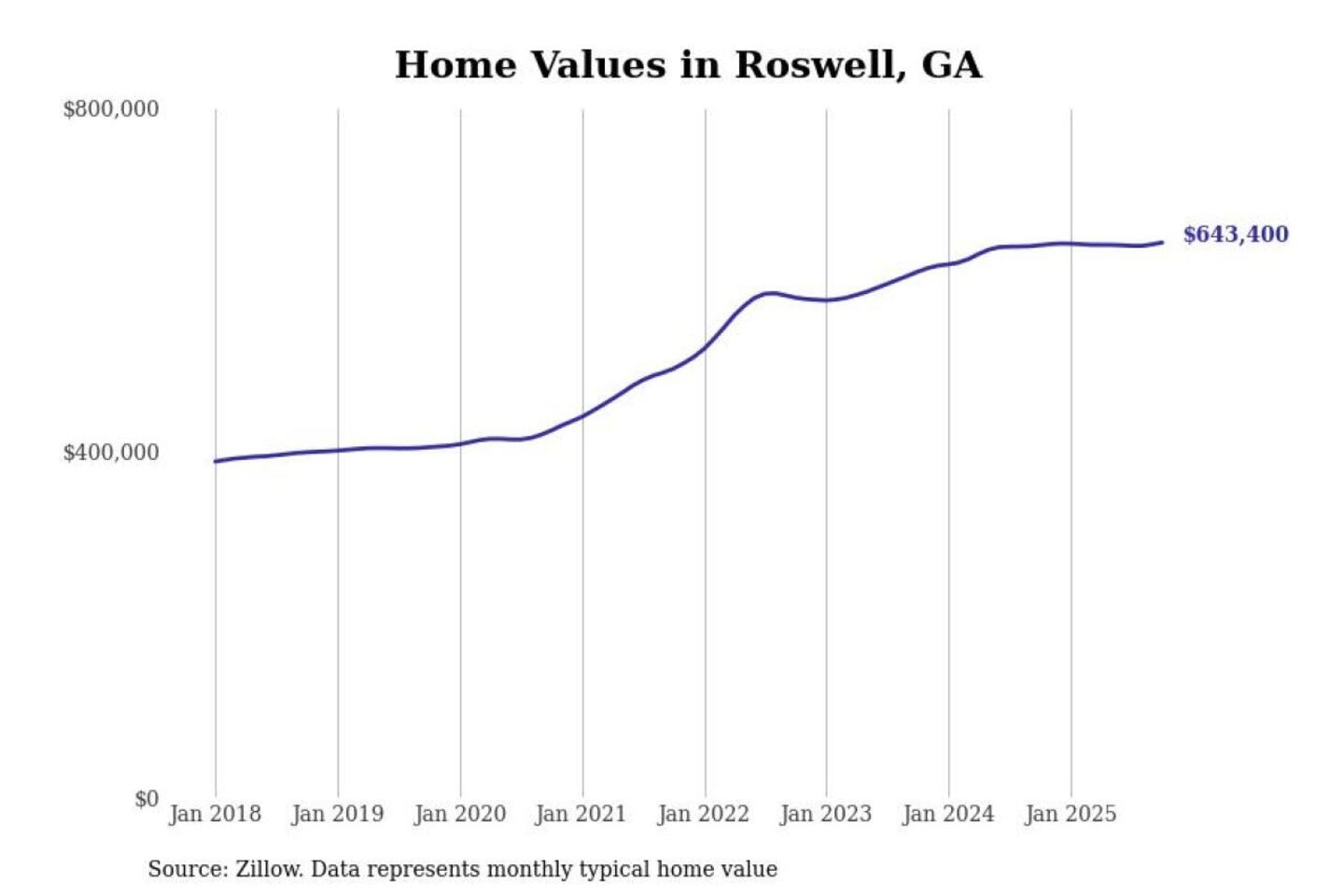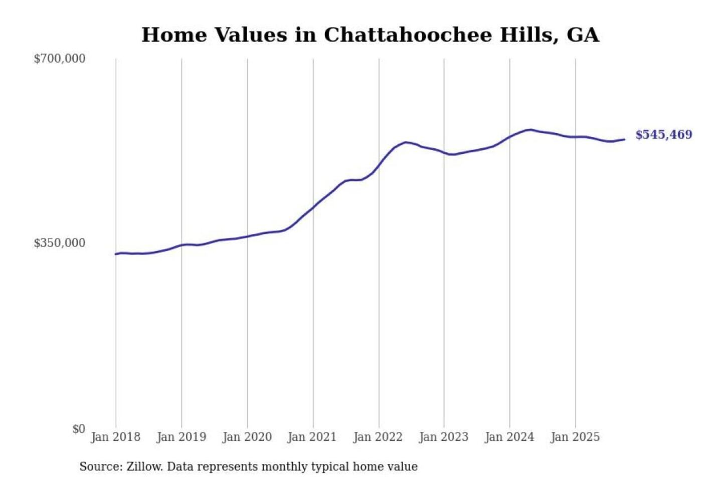 Stacker compiled a list of cities with the most expensive homes in the Atlanta metro area using data from Zillow. Charts show the monthly typical home value since January 2018. Data was available for 149 cities and towns.