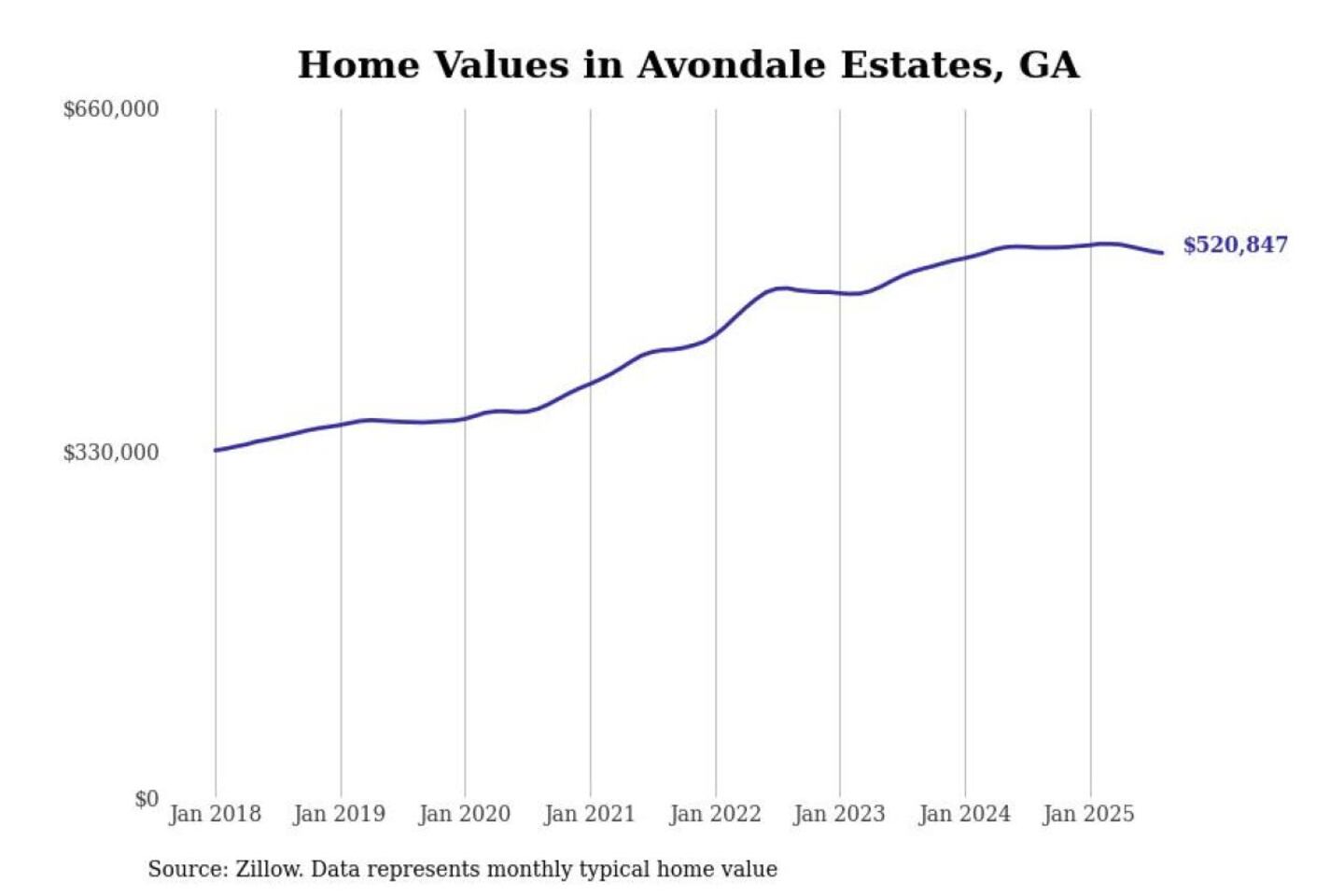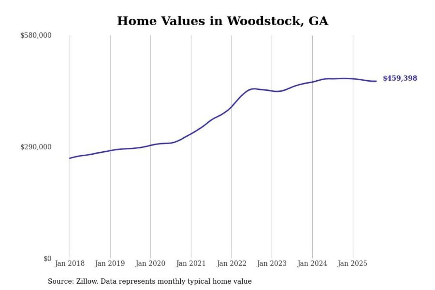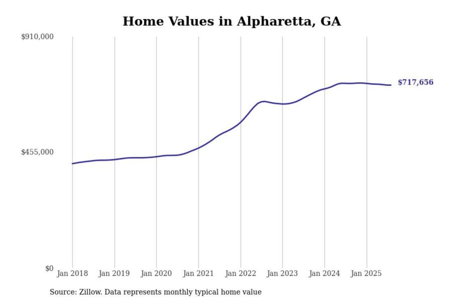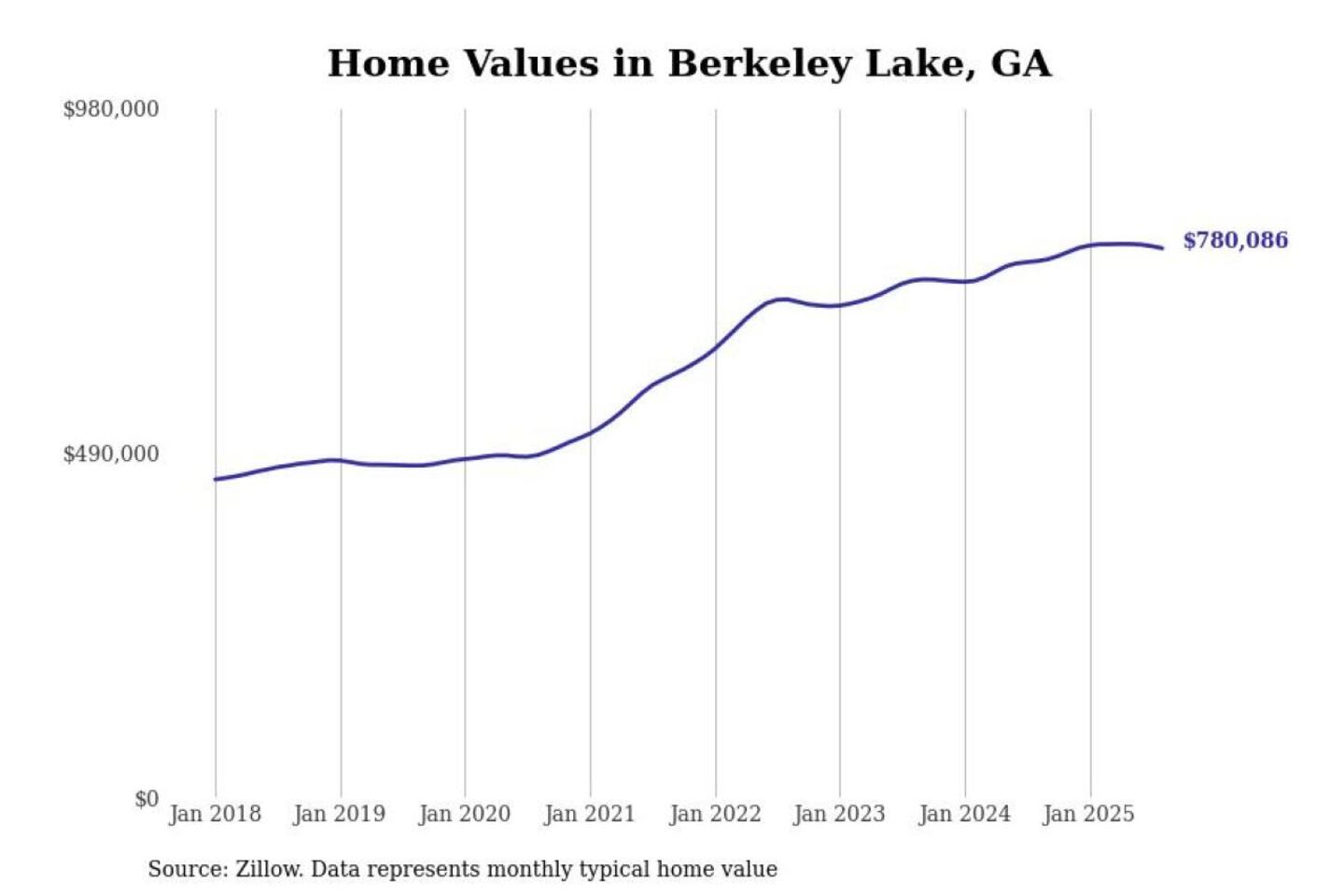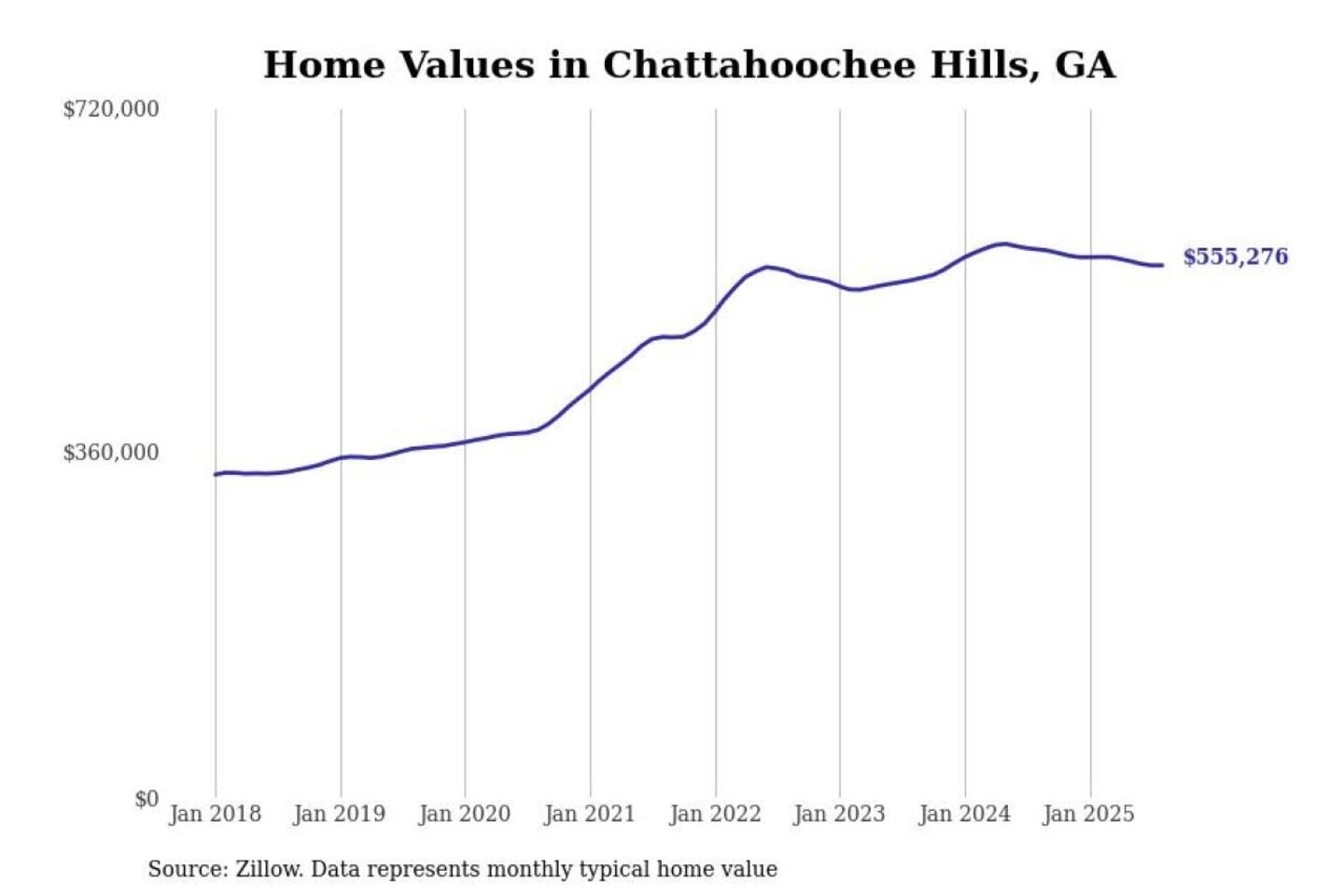 Stacker compiled a list of cities with the most expensive homes in the Atlanta metro area using data from Zillow. Charts show the monthly typical home value since January 2018. Data was available for 149 cities and towns.