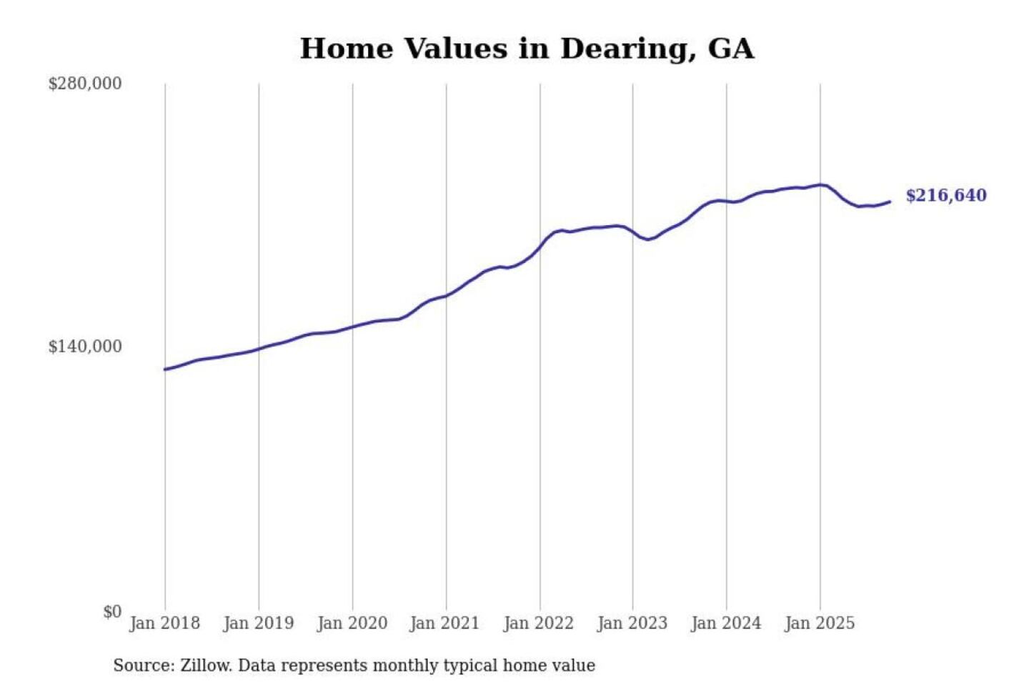 Stacker compiled a list of cities with the most expensive homes in the Augusta metro area using data from Zillow. Charts show the monthly typical home value since January 2018. Data was available for 34 cities and towns.