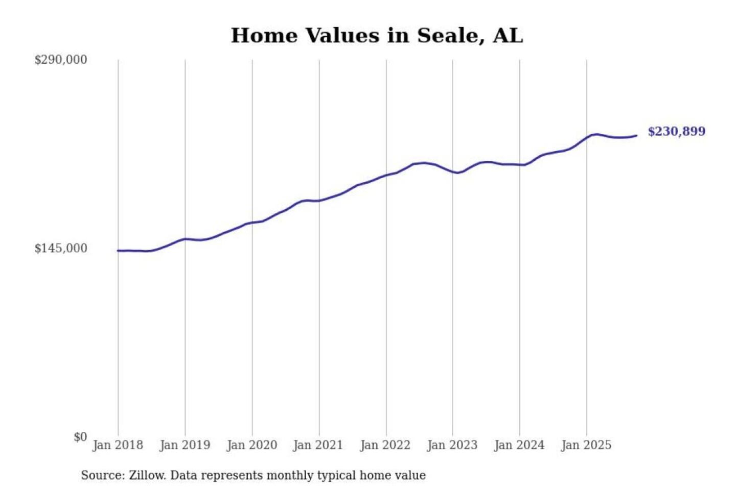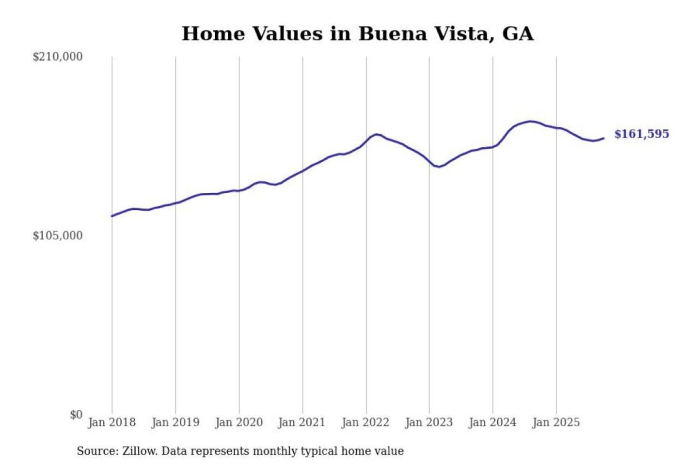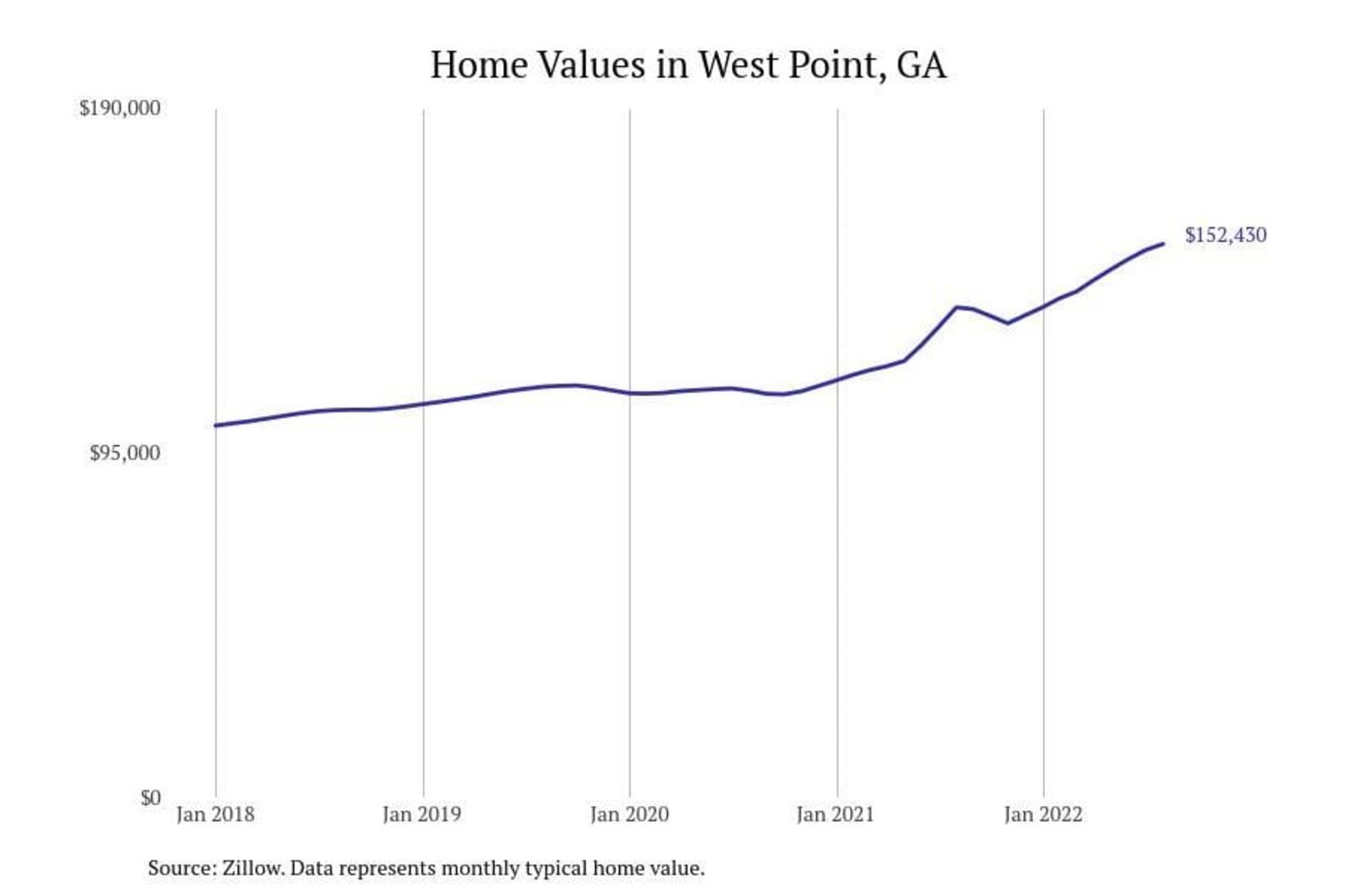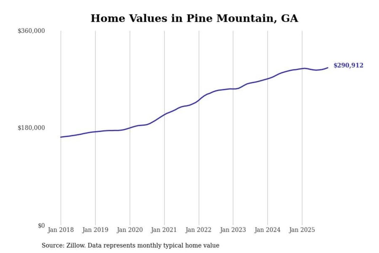 Stacker compiled a list of cities with the most expensive homes in the Columbus, Georgia metro area using data from Zillow. Charts show the monthly typical home value since January 2018. All 23 cities and towns with data available were included in the list.