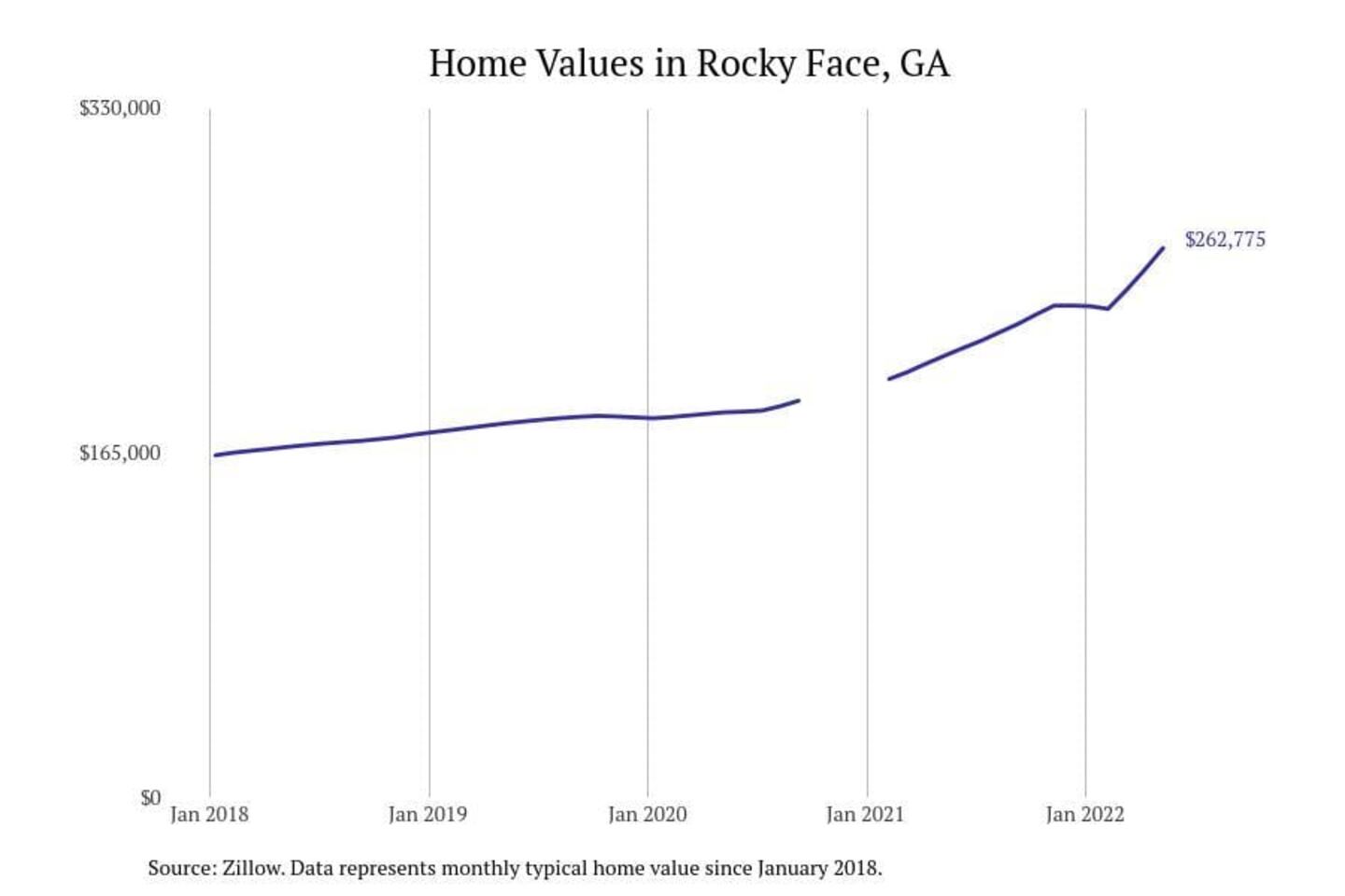 Stacker compiled a list of cities with the most expensive homes in the Dalton metro area using data from Zillow. Charts show the monthly typical home value since January 2018. All 8 cities and towns with data available were included in the list.