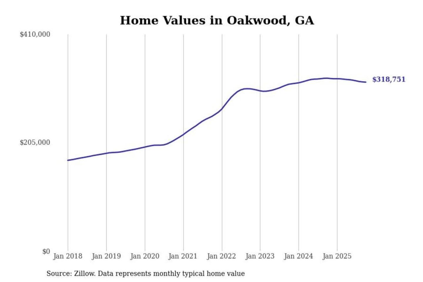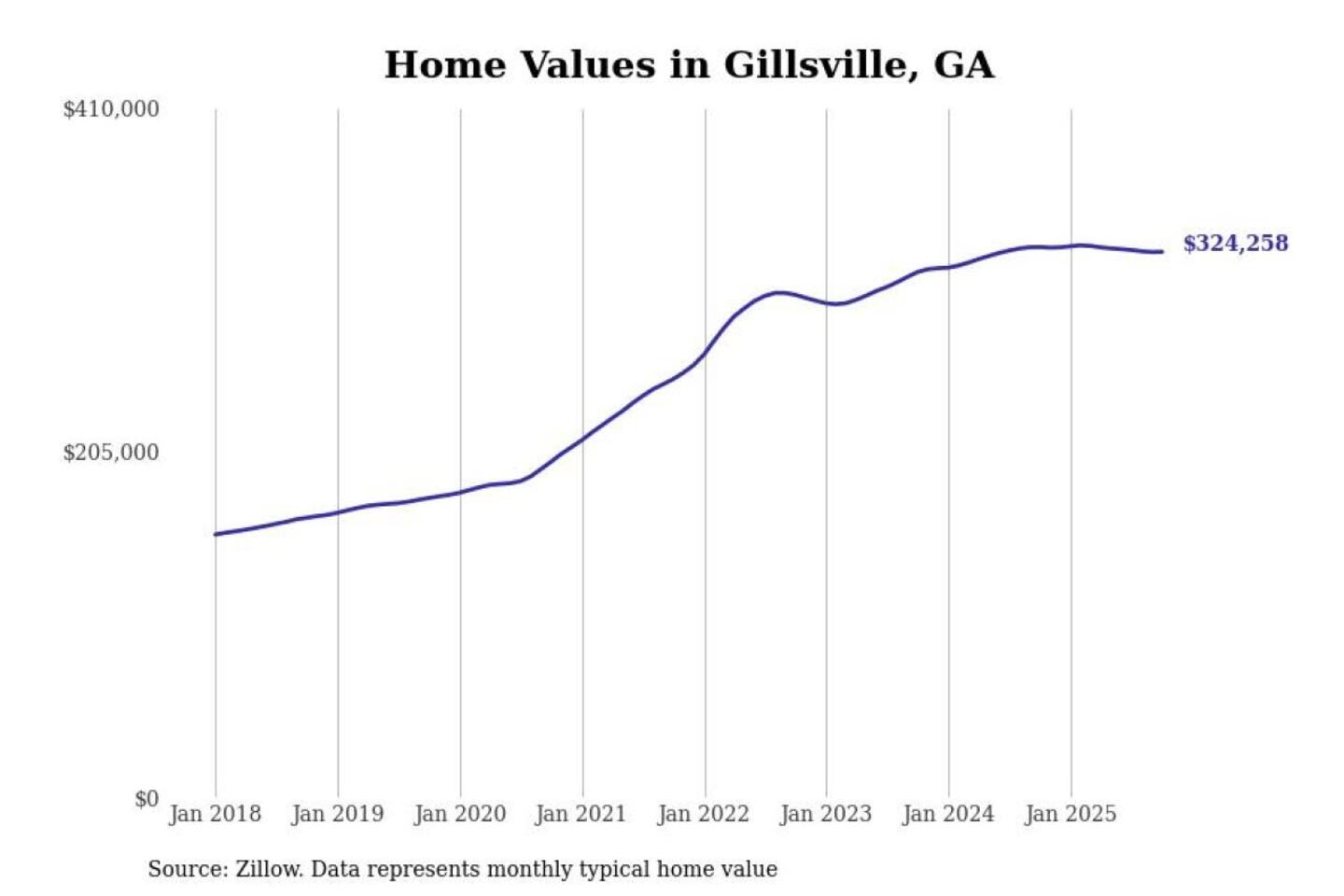 Stacker compiled a list of cities with the most expensive homes in the Gainesville, Georgia metro area using data from Zillow. Charts show the monthly typical home value since January 2018. All 7 cities and towns with data available were included in the list.