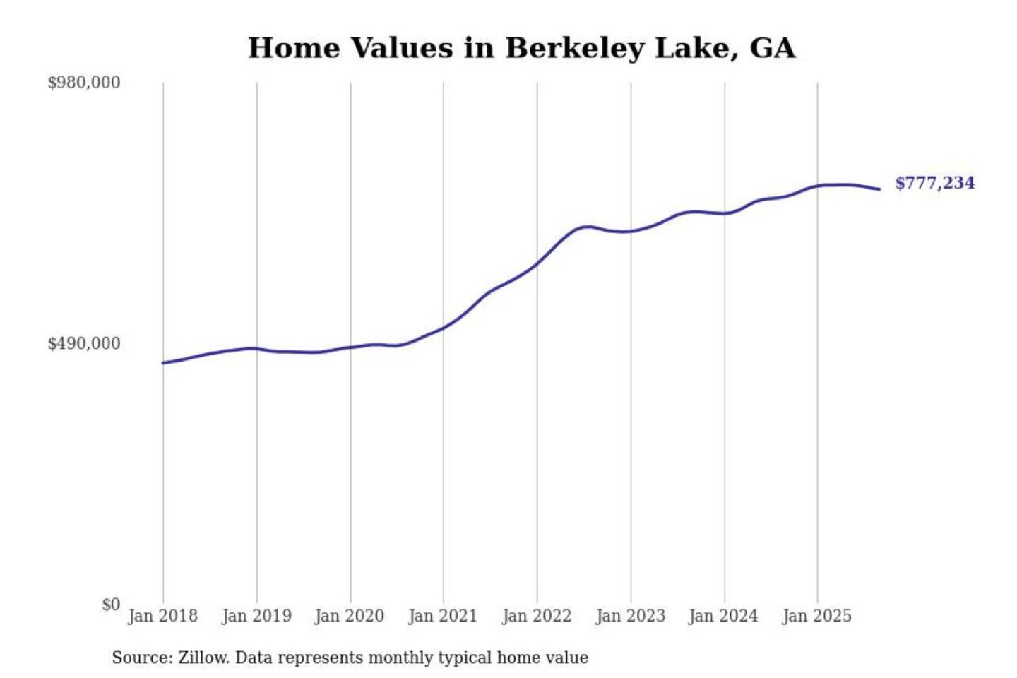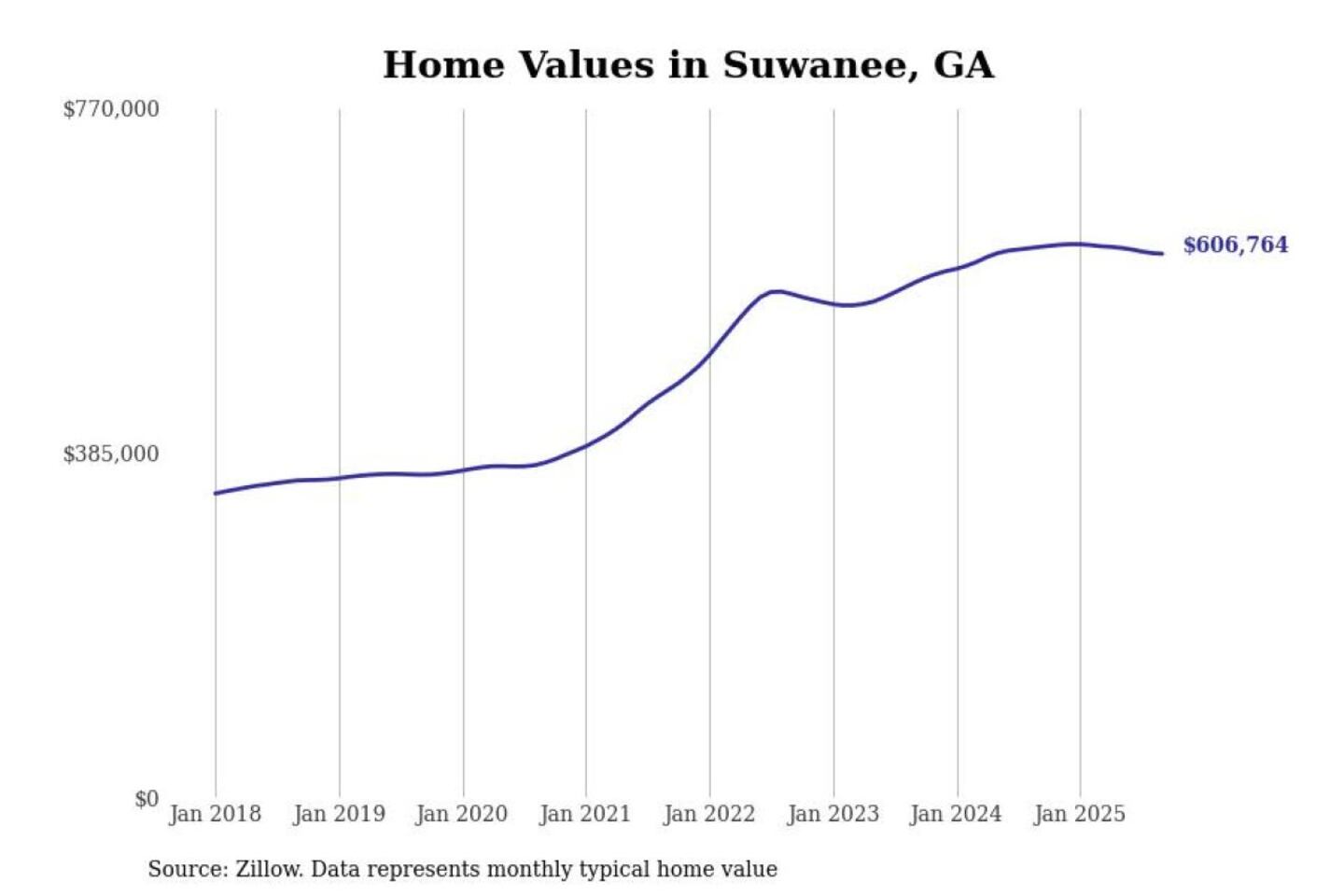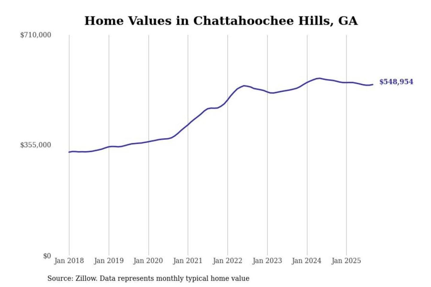 Stacker compiled a list of cities with the most expensive homes in Georgia using data from Zillow. Cities are ranked by the Zillow Home Values Index for all homes as of October 2025. The charts in this story were created automatically using Matplotlib.