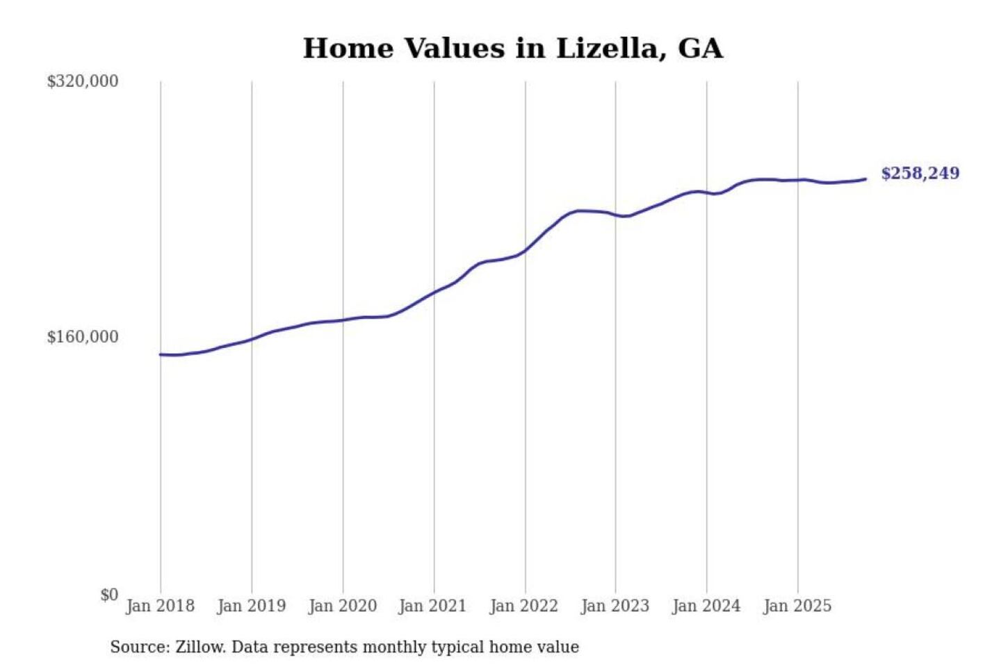 Stacker compiled a list of cities with the most expensive homes in the Macon metro area using data from Zillow. Charts show the monthly typical home value since January 2018. All 14 cities and towns with data available were included in the list.