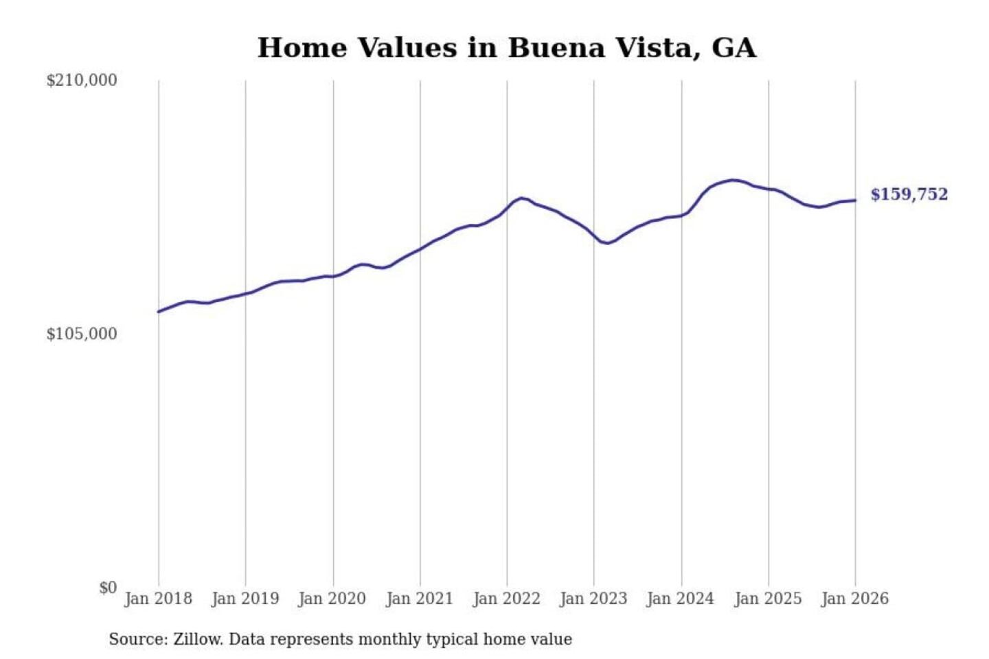 - Typical home value: $159,752