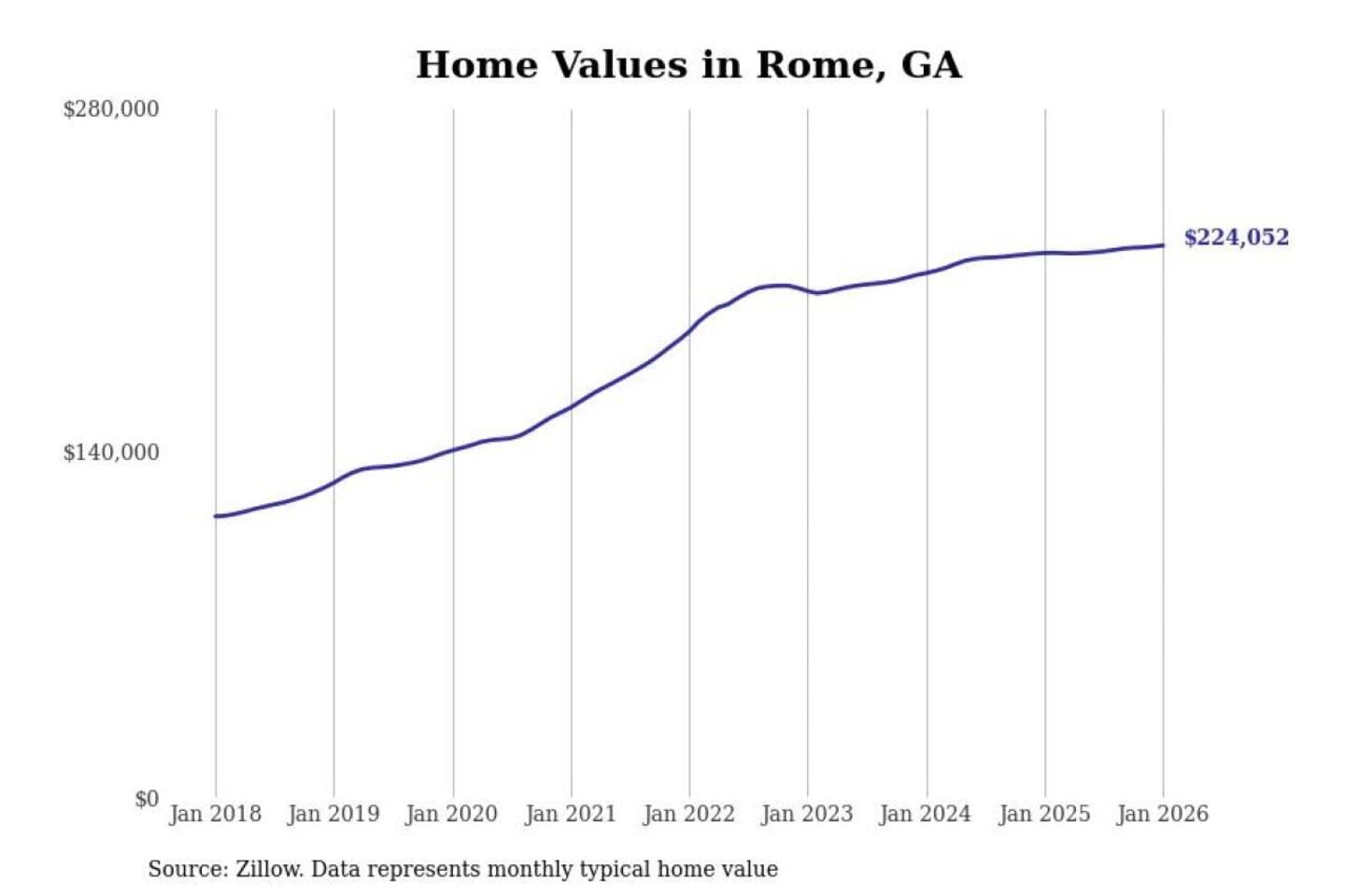 Stacker compiled a list of cities with the most expensive homes in the Rome metro area using data from Zillow. Charts show the monthly typical home value since January 2018. All 5 cities and towns with data available were included in the list.