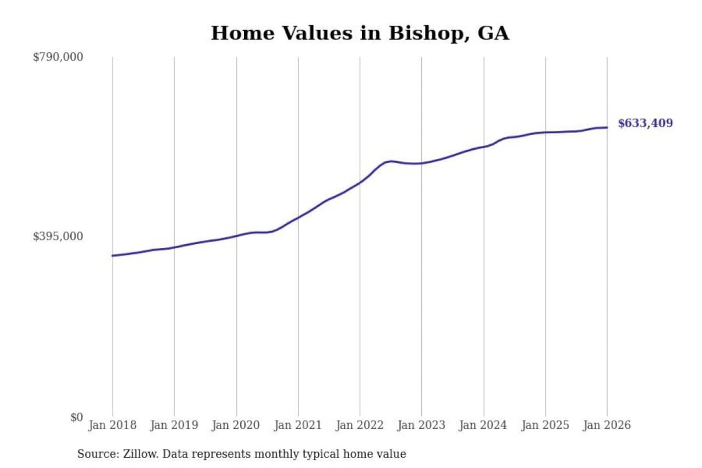 Stacker compiled a list of cities with the most expensive homes in Georgia using data from Zillow. Cities are ranked by the Zillow Home Values Index for all homes as of January 2026. The charts in this story were created automatically using Matplotlib.