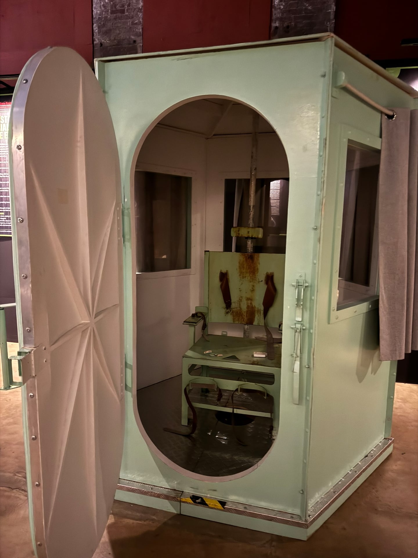 Other displays include a room dedicated to executions featuring a gas chamber, electric chair, and a lethal injection death chair. Visitors are also educated with infographics detailing how long different methods of execution may take and the last meals and words of notorious serial killers before they were executed.