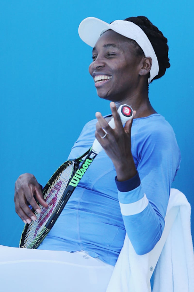Photos: Venus Williams through the years 2016: Venus Williams plays guitar on her racquet during a practice session ahead of the 2016 Australian Open at Melbourne Park on January 13, 2016, in Melbourne, Australia. (Michael Dodge/Getty Images)