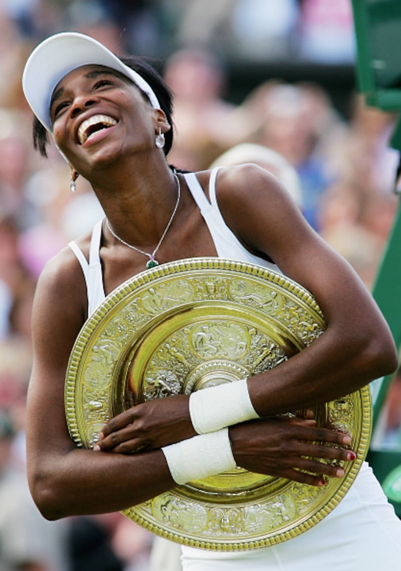 Photos: Venus Williams through the years 2005: Venus Williams holds the trophy after Williams won in three sets against Lindsay Davenport of USA during the Ladies Final on 12th day of the Wimbledon Lawn Tennis Championship on July 2, 2005, at the All England Lawn Tennis and Croquet Club in London. (Mike Hewitt/Getty Images)