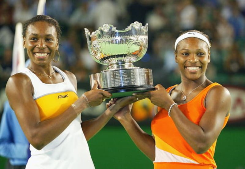 Photos: Venus Williams through the years 1999: Venus and Serena Williams of the USA show off their respective trophies at the Grand Slam Cup from the Olympiahalle, Munich, Germany, on Oct. 3, 1999. (Clive Brunskill/Allsport via Getty Images)