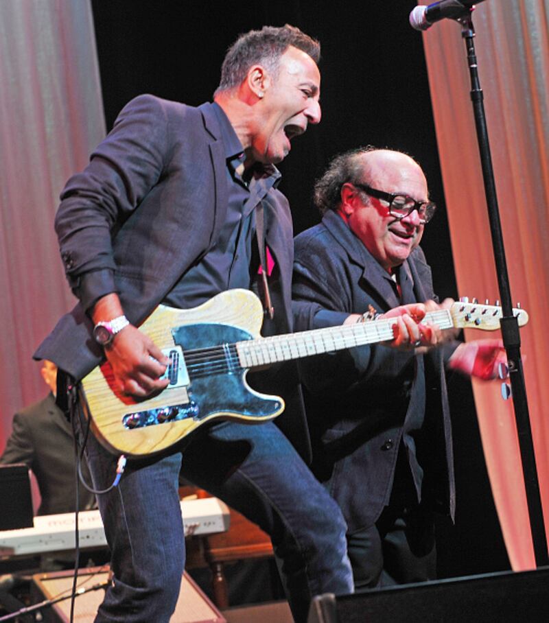 Through the years Bruce Springsteen (L) and Danny DeVito perform together at the 3rd Annual New Jersey Hall of Fame Induction Ceremony at the New Jersey Performing Arts Center on May 2, 2010 in Newark, New Jersey. (Photo by Bobby Bank/Getty Images) (Bobby Bank/Getty Images)