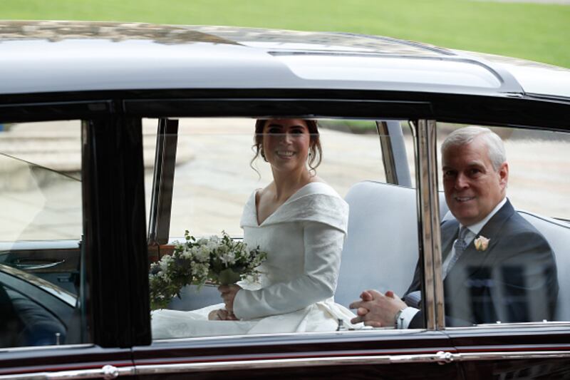 Through the years Princess Eugenie of York and her father Prince Andrew, Duke of York arrive for the wedding of Princess Eugenie of York to Jack Brooksbank at St. George's Chapel on October 12, 2018 in Windsor, England. (Photo by Jeremy Selwyn - WPA Pool/Getty Images) (Jeremy Selwyn/Getty Images)