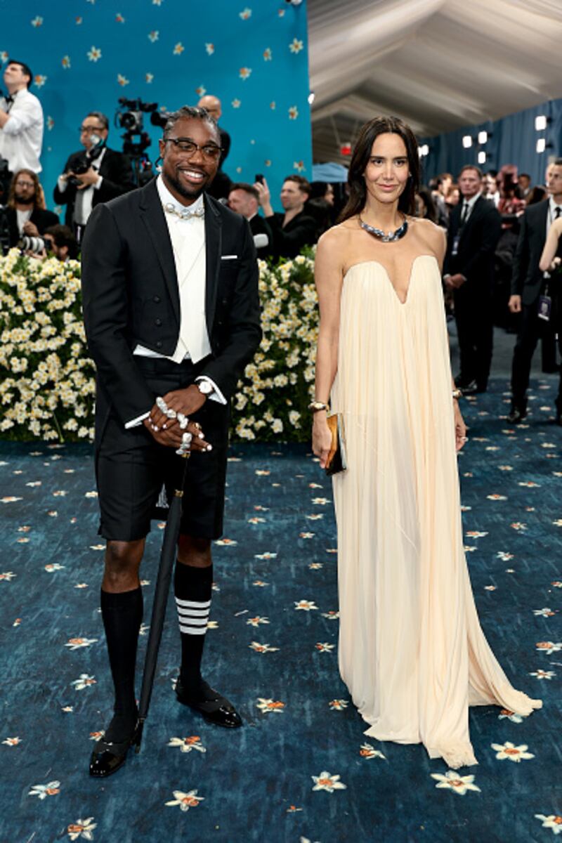 2025 Met Gala NEW YORK, NEW YORK - MAY 05: (L-R) Noah Lyles and Ana Khouri attend the 2025 Met Gala Celebrating "Superfine: Tailoring Black Style" at Metropolitan Museum of Art on May 05, 2025 in New York City. (Photo by Dimitrios Kambouris/Getty Images for The Met Museum/Vogue) (Dimitrios Kambouris/Getty Images for The Met Museum/)