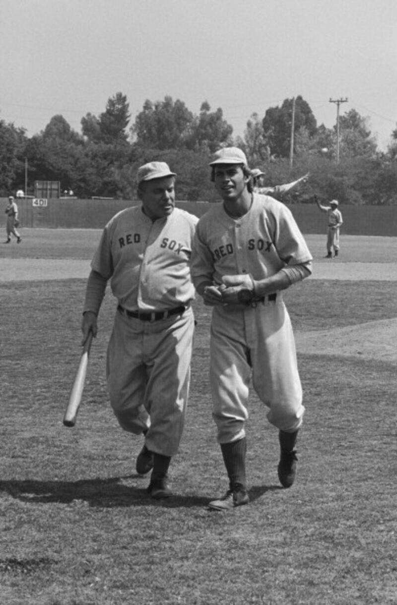 Through the years VOYAGERS! -- "Cleo and the Babe" Episode 6 -- Aired 11/14/82 -- Pictured: (l-r) William Lucking as Babe Ruth, Jon-Erik Hexum as Phineas Bogg -- Photo by: NBCU Photo Bank (NBC/NBCUniversal via Getty Images)