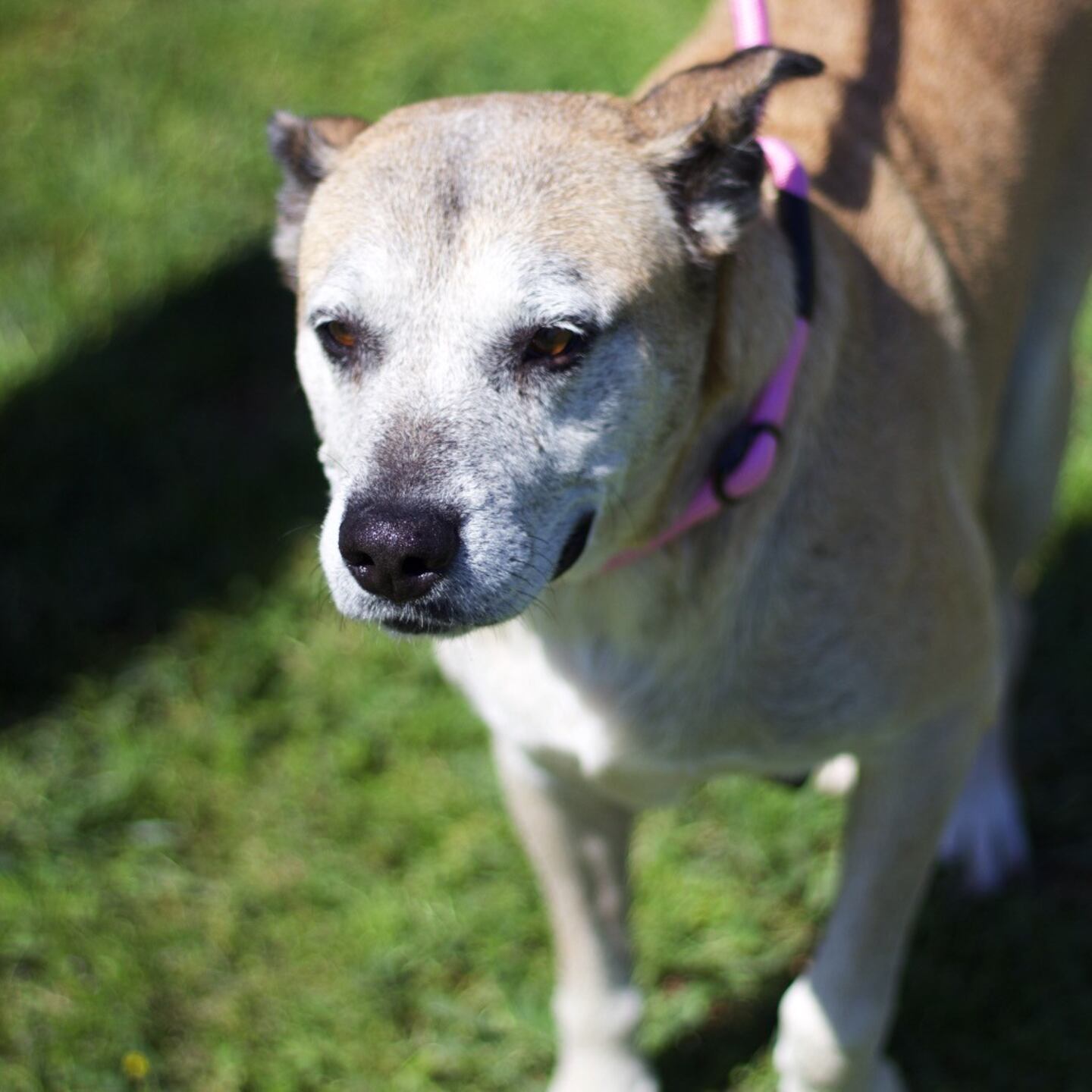 Beautiful Holiday is an extra sweet senior girl (nine and a-half-years) who is about as calm and mellow as a pup can be. This 60-pound hound/shepherd mix is a master cuddler. She’s polite and quiet. She was a devoted mother to an adorable litter, so she has nurturing built into her bones.