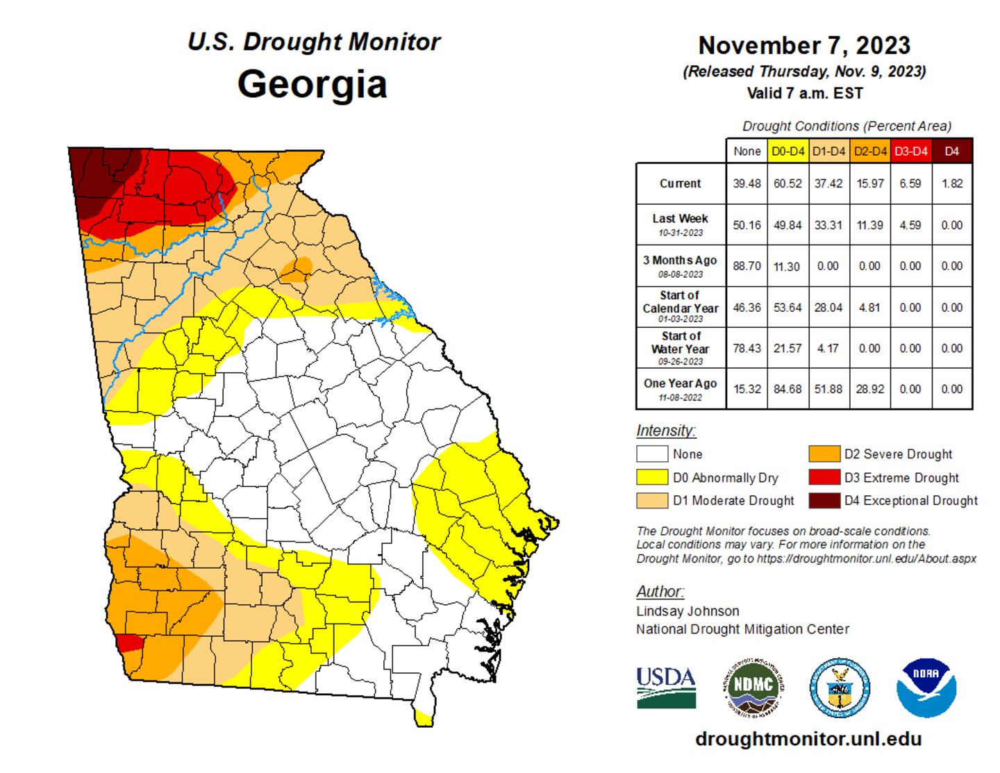 North Georgia, including Metro Atlanta, is experiencing D1 Moderate Drought conditions.